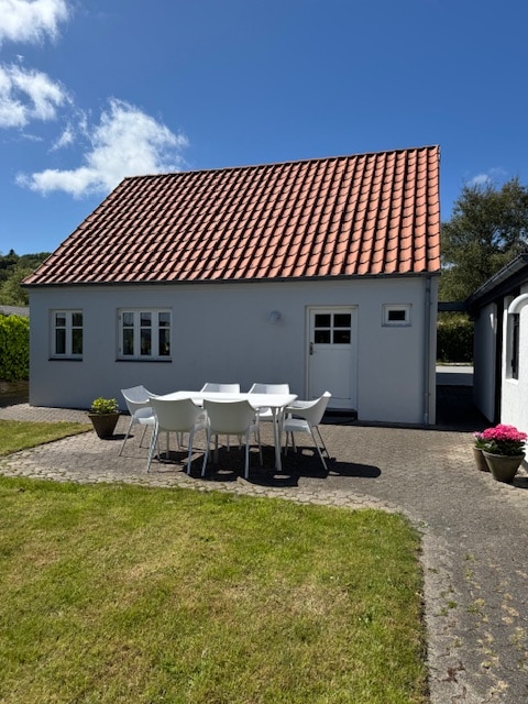 Wellkept summer cottage located beside a small forest in quiet area. 150 m to a childfriendly and beautiful beach. You can reach the city centre of nearby town Sæby by foot along the beach – or a short drive. Spacious green garden with 2 undisturbed terraces and dining areas, a barbeque and a fireplace. Pets are not allowed. NB: Rent includes heating, electricity, water, WiFi, cable-TV, towels, bed linen and basis products. Exit cleaning fee of 650 DKK