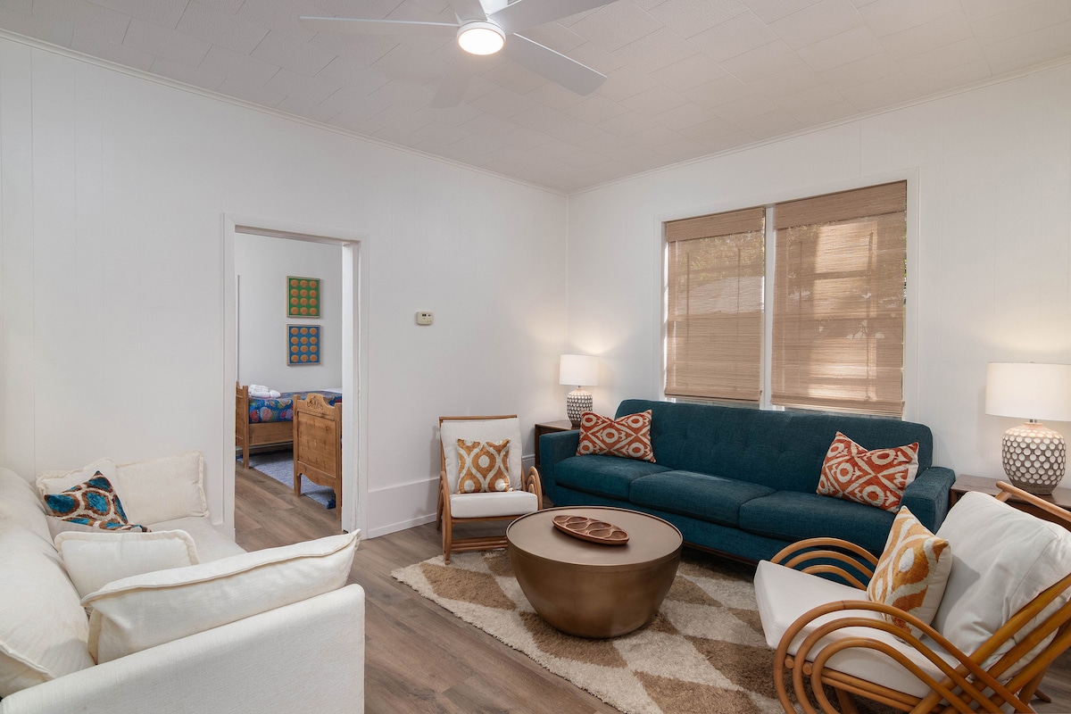 Your family will be close to everything when you stay at this centrally located destination! Half a block to the Square (through Faulkner Alley!) and .9 miles to the Grove. One of the most desired locations in all of Oxford!! Never look for parking spaces! 1 covered spot per rental. Code access for the building and garage. Very secure ! Updated farmhouse boho decor with top of the line Viking appliances.