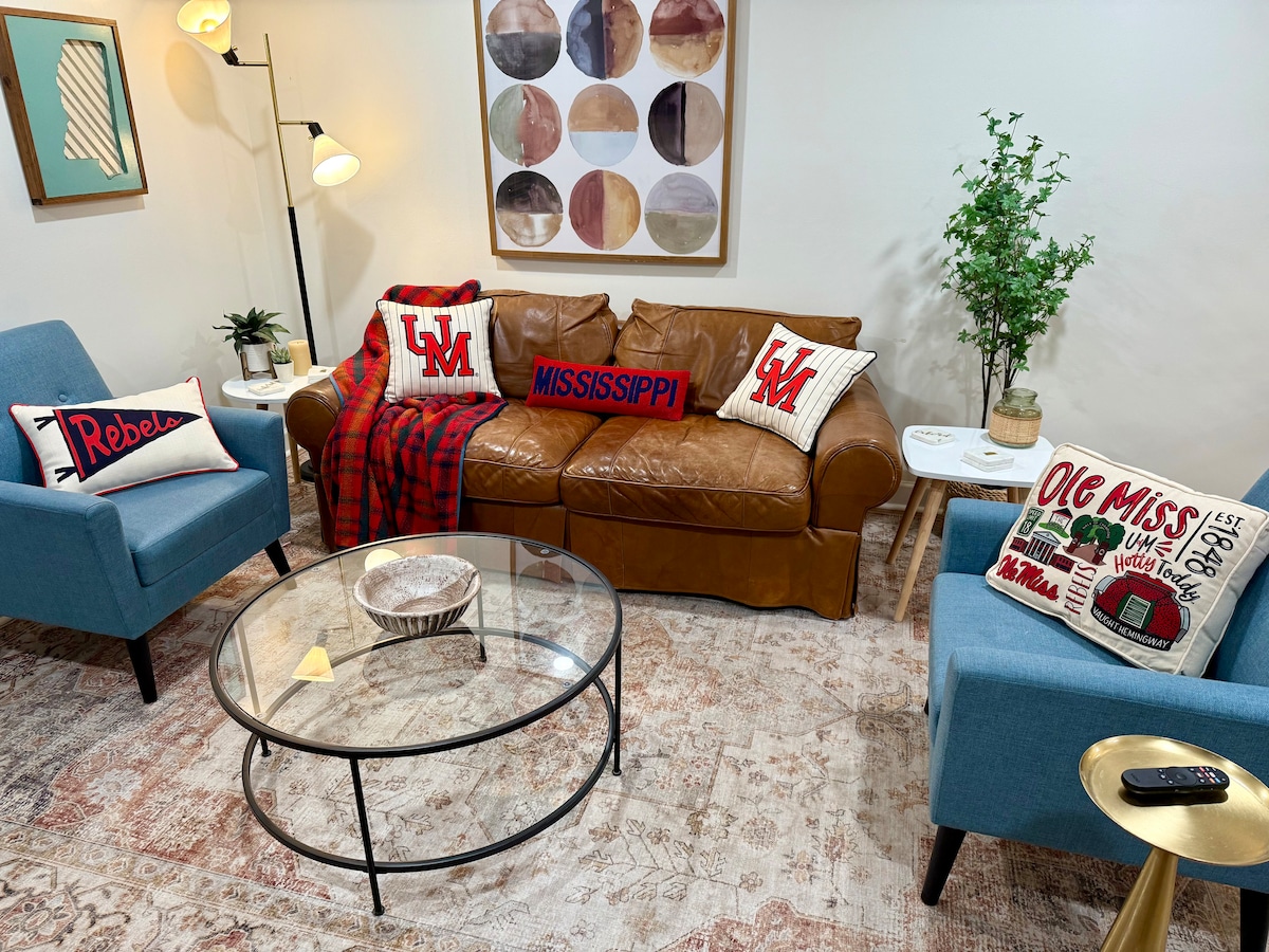 Step into the charm of the Rowandale House, a recently renovated 2 bed, 2 bath retreat right in the heart of Oxford. Our inviting space can host 4 guests complete with a fully equipped kitchen ready for your culinary adventures. Our living room is designed for laughter, memory making, and relaxation. Whether you’re bonding over board games with friends and family, peacefully reading, or catching the excitement of college game day our space is tailored for you.