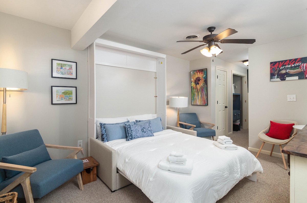 Twin beds make this guesthouse a great option for family or friends traveling to Oxford - wanting to be walking distance to the Square, with its own dedicated parking spot. A coffeemaker, microwave and mini fridge is just enough to help with breakfast or a snack - and some of Oxford’s best restaurants are a short walk away! Volta, Chicory Market, Good Day Cafe, Jinsei, Big Bad Breakfast and SnackBar are the closest eateries to this cute little guesthouse!