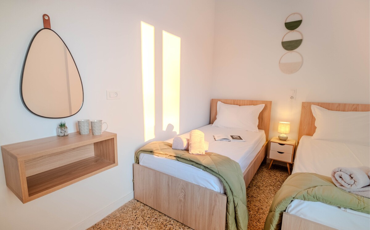 Thank you for your interest in Nomas living . We sincerely hope that you will enjoy our hospitality. It is our desire to provide our guests hotel convenience in a SAFE, pleasant and friendly atmosphere. We are located in the area of Kalamaki, just 3 km away from the center of the island / port, 1.5 km away from the Airport and just 5 minutes walk from kalamaki beach which is part of the protected marine park of the island.