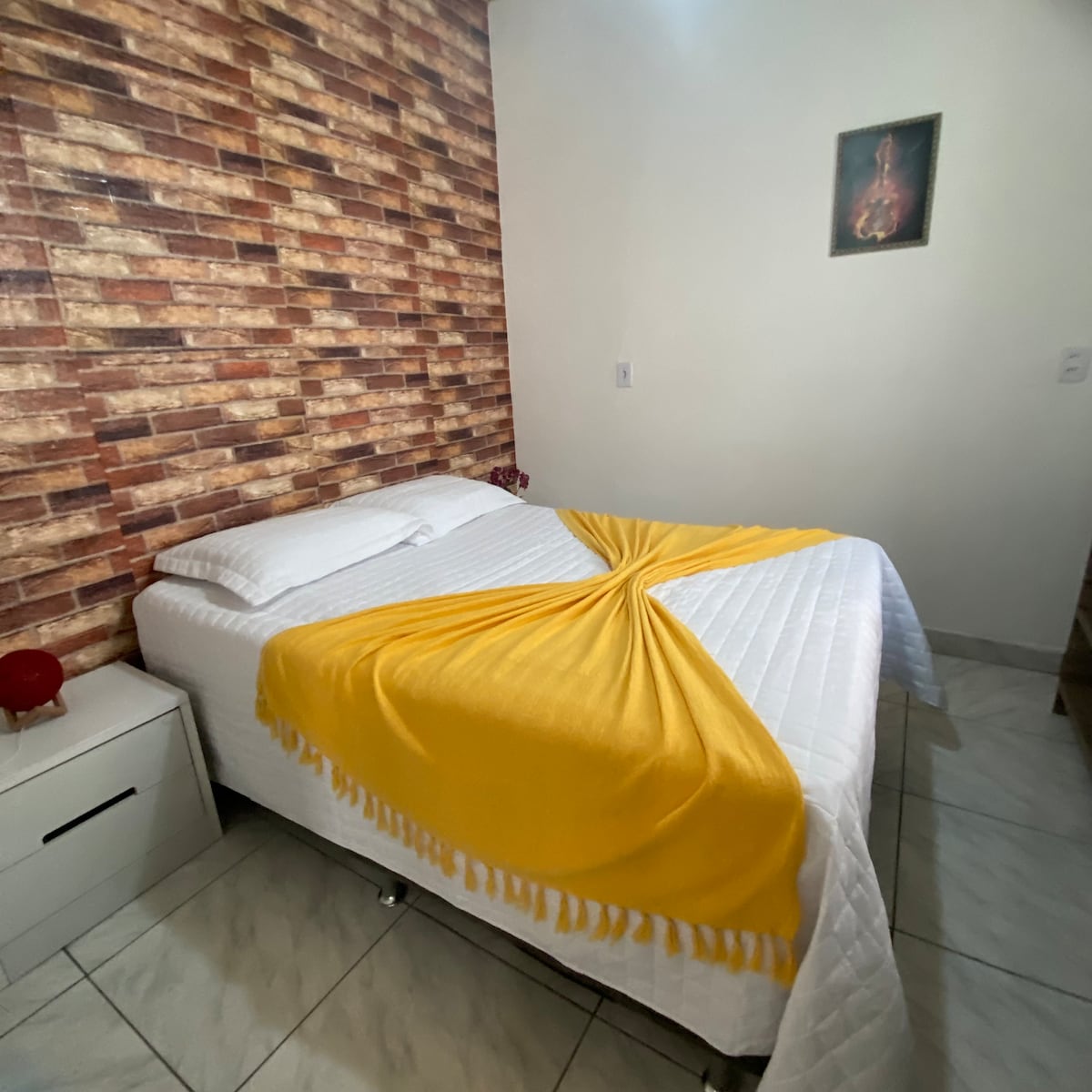 Microcasa com cama box de casal, sofá cama e colchão de solteiro .Disponibilizamos produtos básicos como sal, óleo, açúcar, café ☕️ e alguns eletrodomésticos, caso queira fazer as refeições. Também possui água quente na cozinha e banheiro. Fornecemos papel higiênico e detergente. Possui roupas de cama, travesseiros e toalhas. Um cantinho com tudo o que vc precisa, aconchegante e próximo ao centro da cidade da Cidade.