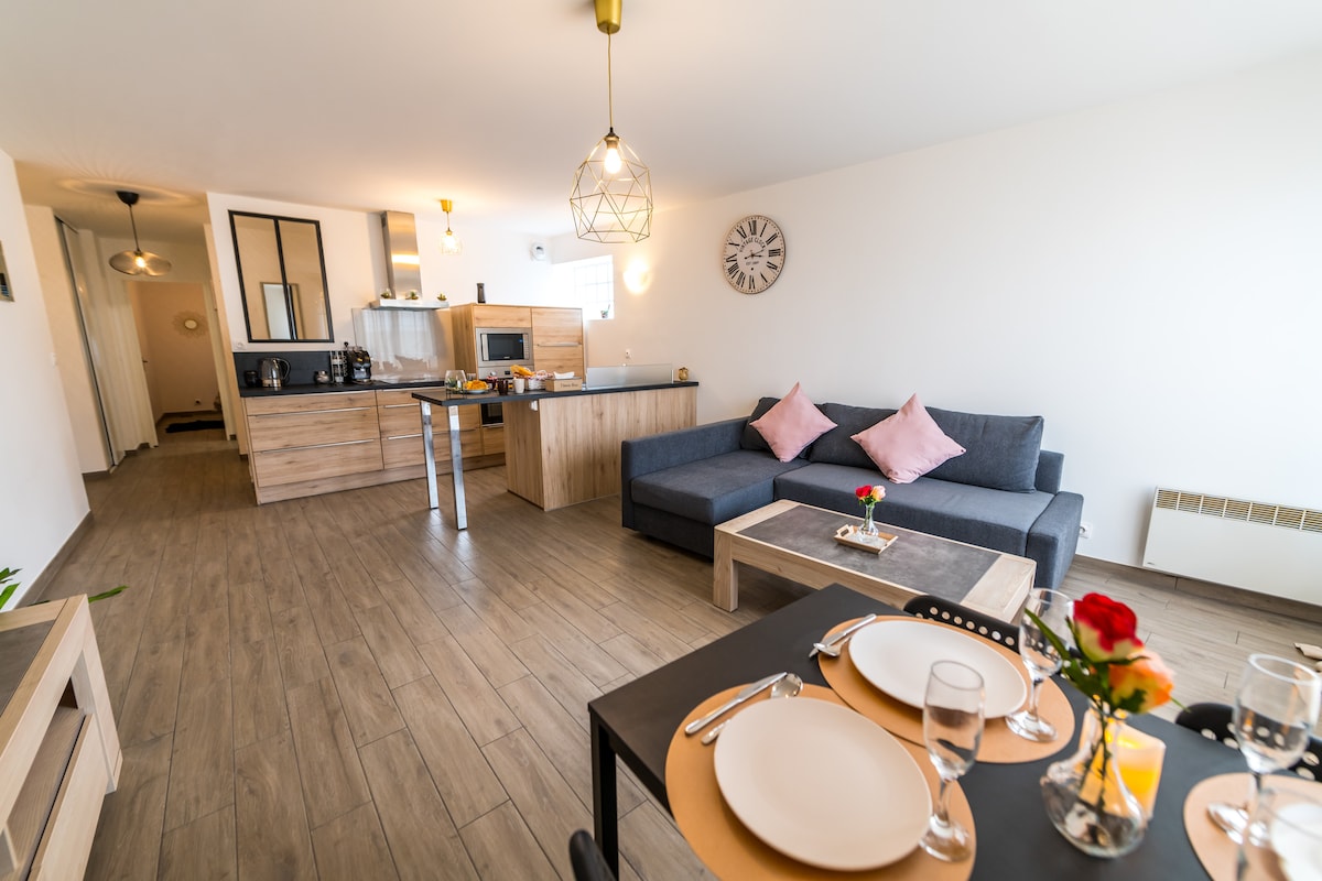 🖤 Bienvenue dans la Black Suite Une suite au design élégant et envoûtant, pensée pour les couples en quête d’un moment hors du temps. À seulement 5 minutes de Disneyland Paris, cet appartement entièrement rénové vous plonge dans une ambiance chic, intimiste et raffinée, idéale pour une escapade romantique. Que ce soit pour une soirée spéciale, une surprise ou simplement un moment de détente à deux, la Black Suite vous promet une expérience unique.