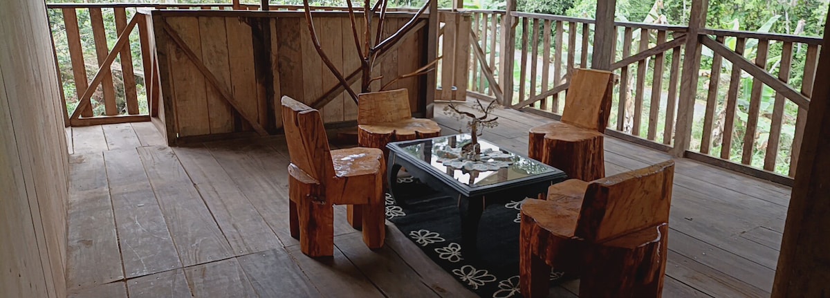 Es un espacio dedicado a los amantes de la naturaleza y la tranquilidad, para disfrutar del canto de los pájaros, ver animales en su hábitat natural como los monos titi, mariposas y muchos otros, este espacio cuenta con todas las comodidades y decoración rústica. La finca cuenta con 12ha de terreno, dos caballos, pescados tilapias y animales de granja, claro también árboles frutales autóctonos. La casa y los patios son de uso privado y exclusivo para los huéspedes.