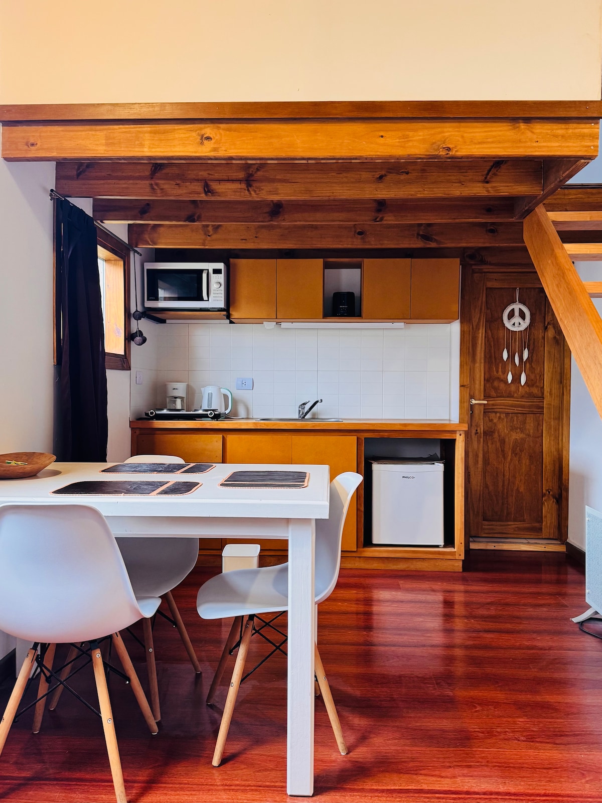 🏠Beautiful loft in El Chaltén, excellently located📍 Maximum capacity 2 guests. Fully equipped to ensure you enjoy your stay (refrigerator, stovetop, microwave, electric kettle, and all the necessary utensils for cooking). In the neighborhood, you'll find cafés, restaurants, grocerys stores, an ice cream shop, stores to rent or buy trekking clothing and equipment. ❇️We have a locker to store your luggage! NOTE: The maximum height of the mezzanine, where the bed is located, is 1.60 meters.