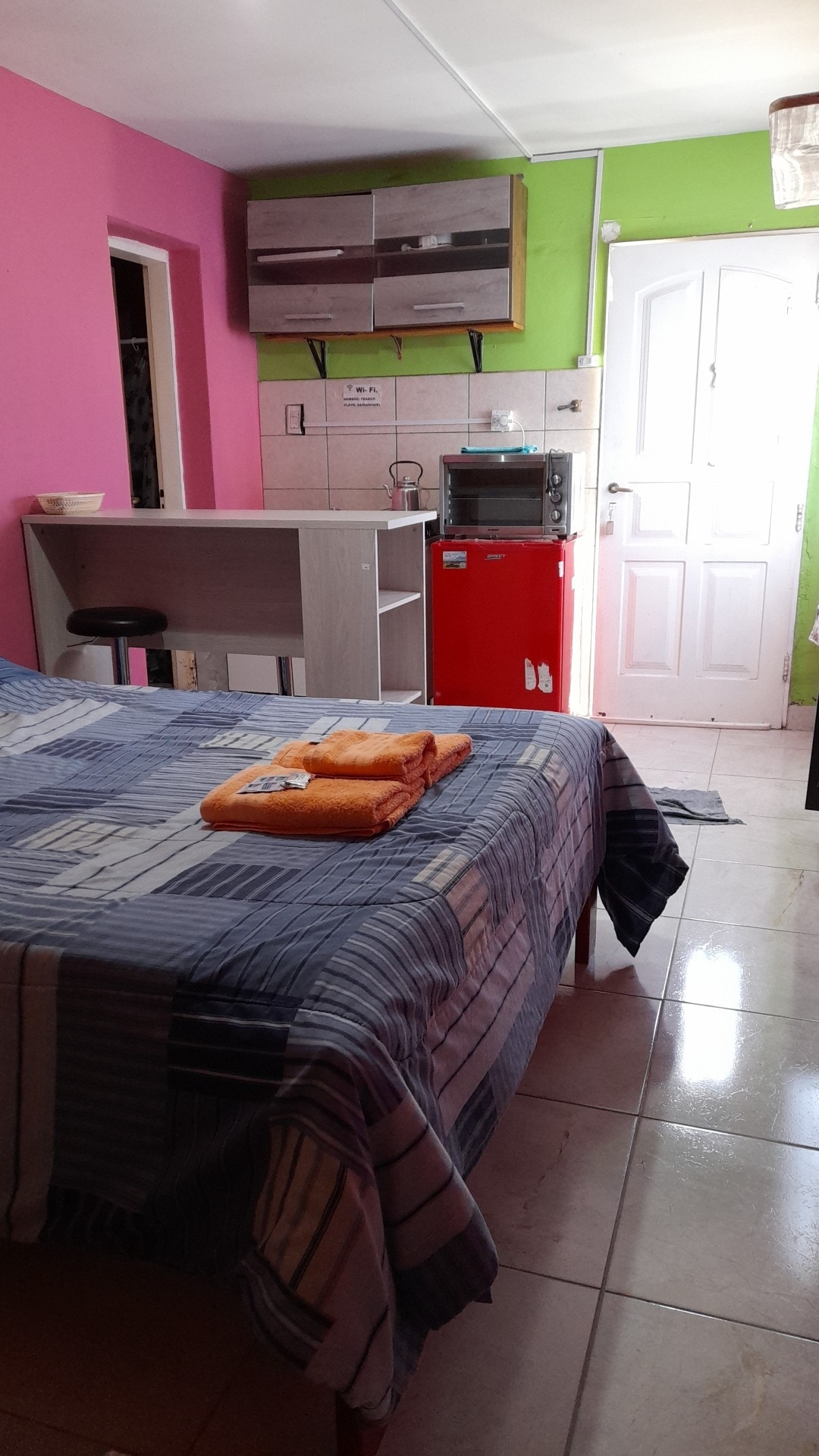 Dpto pequeño, ideal para quienes buscan algo económico. No es apto para personas con movilidad reducida. Cuenta con baño y cocina en planta baja y habitación con cama doble en planta alta. Smartv en ambas plantas. Tiene WiFi, videocable, ropa de cama, toallones, shampoo, jabón. Esta a 50 mts de la terminal y a 700 mts del centro. El barrio es tranquilo rodeado de alamedas.