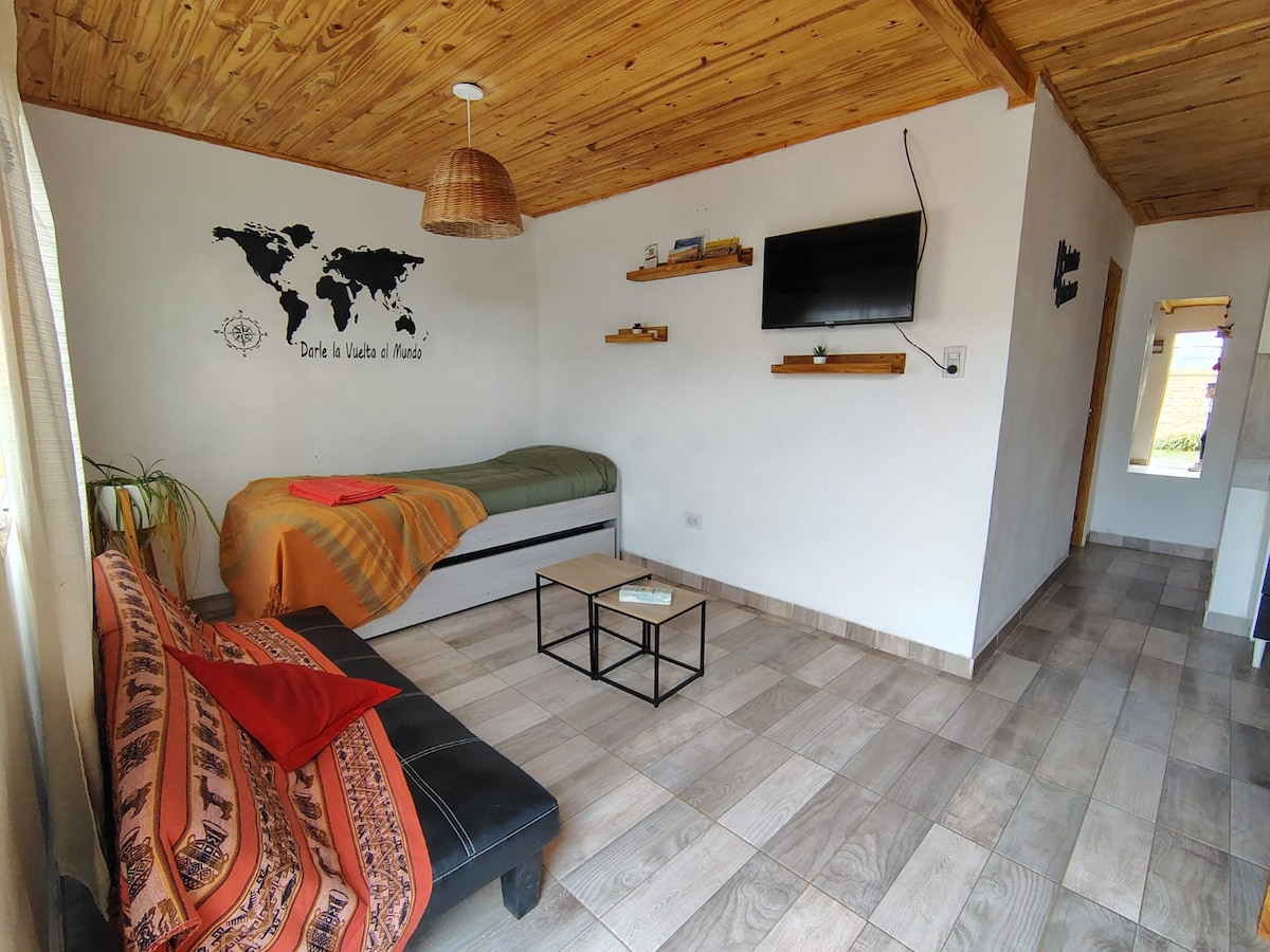 Hermoso monoambiente a 1 cuadra de la terminal de ómnibus, 300 mts del banco Nación, 400 mts de La Anónima. Dpto a estrenar con Smartv 50', WiFi, Directv prepago, patio, parrilla, estacionamiento, cocina equipada, salamandra, ropa de cama y toallas. Pet friendly!