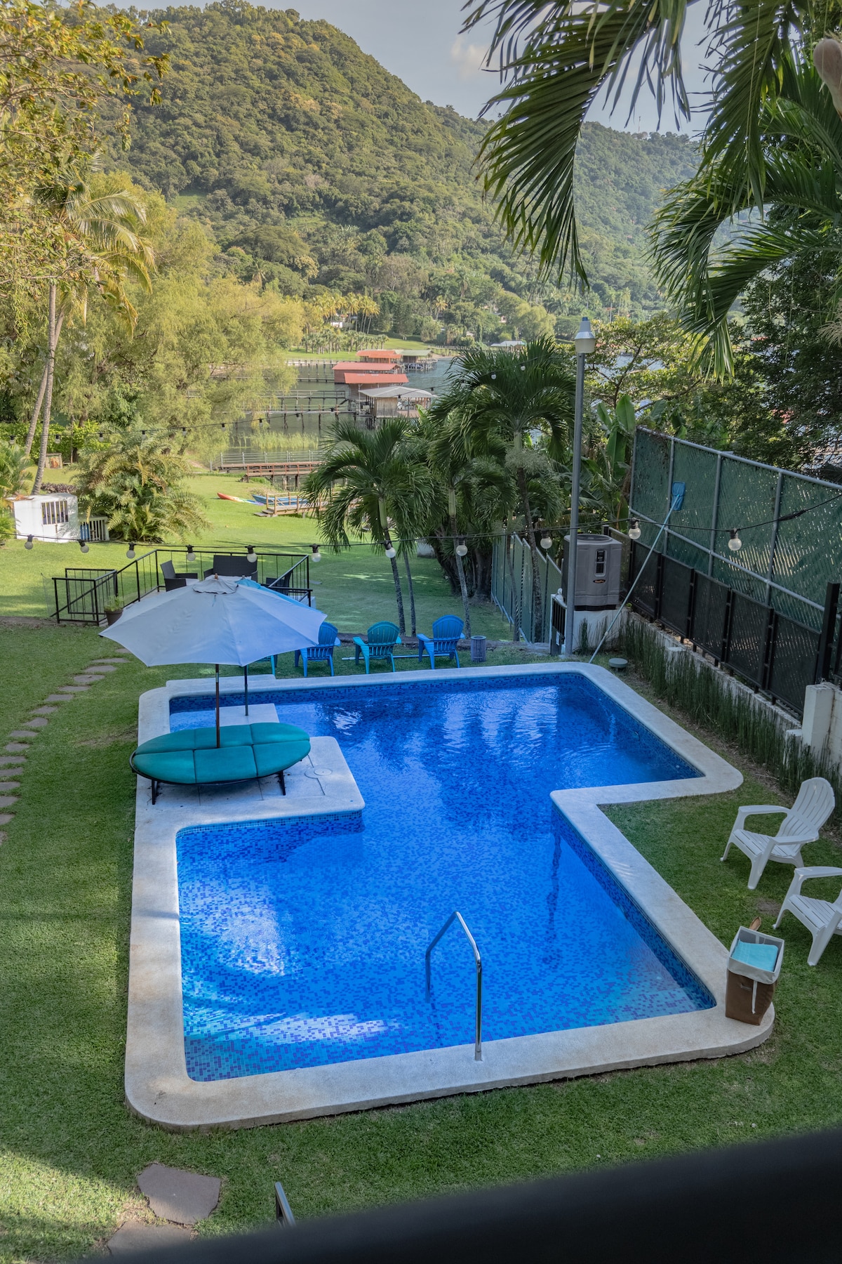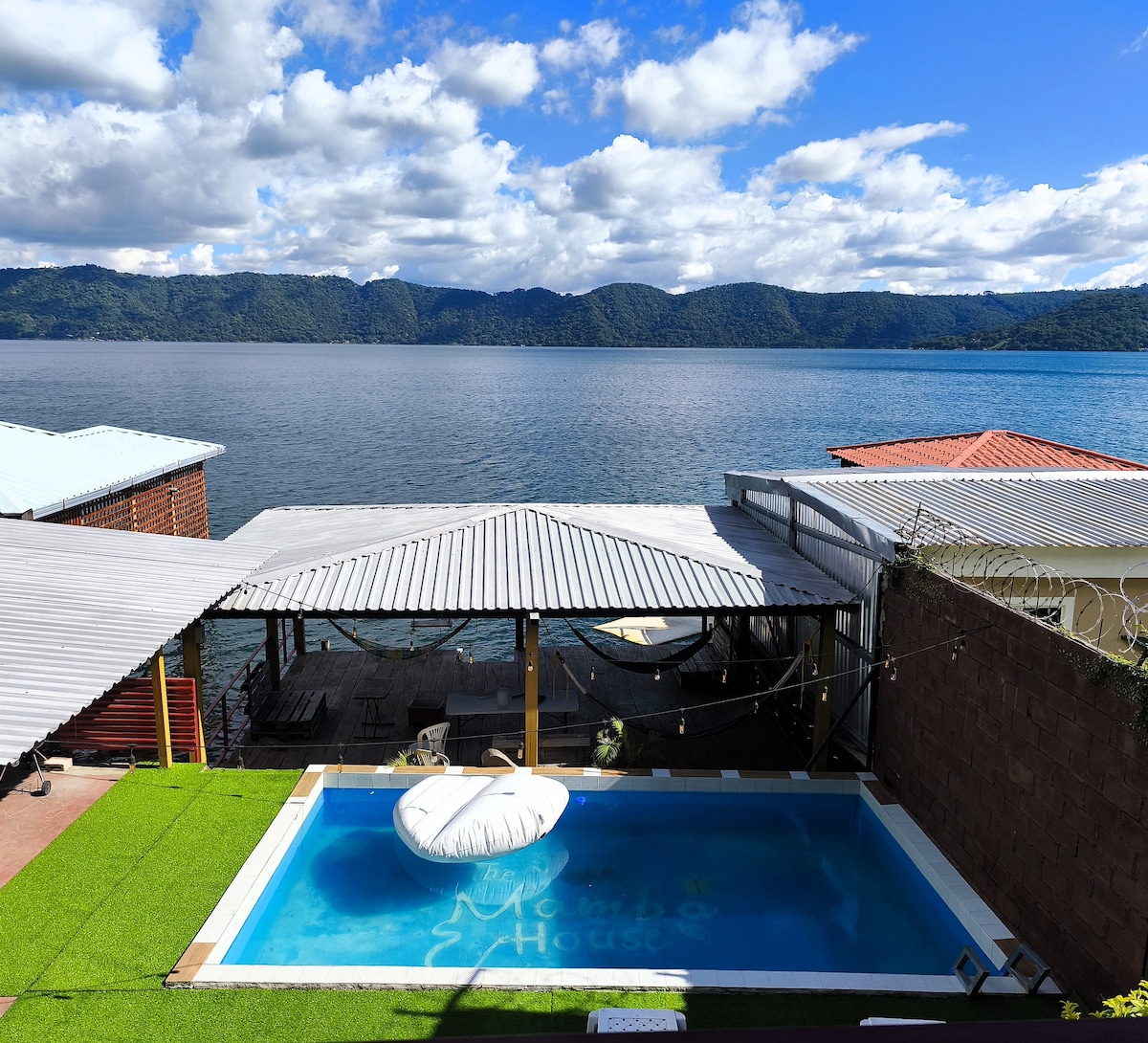 Hermosa y acogedora casa de campo en el lago de Coatepeque, rodeada de un ambiente natural, jardines y áreas verdes, una preciosa vista al lago y un ambiente fresco por el bosque que posee. Vista Turquesa se encuentra a 3 hrs del Aerop. de El Salvador, 1.30 min desde San Salv., 20 min de Santa Ana y a 15 min de la estación de gas e iglesia. El estilo de la casa es completamente moderno, se ha remodelado pensando en detalles que harán de su estadía memorables recuerdos con familia y amigos.