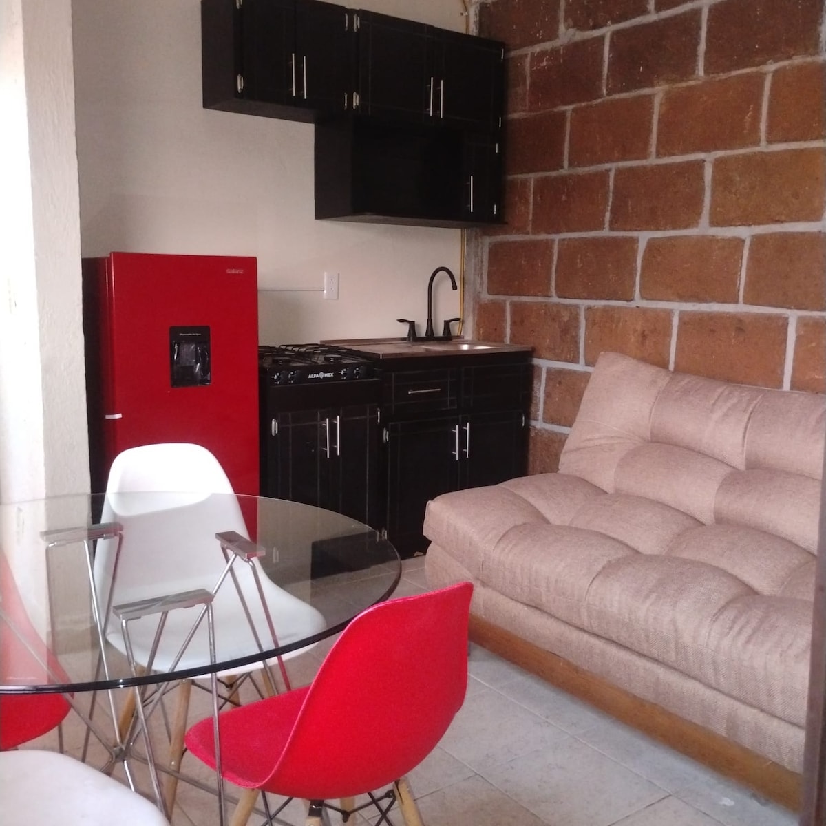 Bienvenido a tu hogar lejos de casa. Nuestro departamento combina comodidad, estilo y ubicación perfecta para que disfrutes al máximo tu estancia en Morelos. Con una decoración moderna y un ambiente acogedor, este espacio ha sido diseñado para ofrecerte descanso, privacidad y todo lo que necesitas durante tu estancia. Disfruta de una cocina completamente equipada, habitaciones cómodas y con aire acondicionado, espacio luminoso y una terraza ideal para relajarte al final del día.