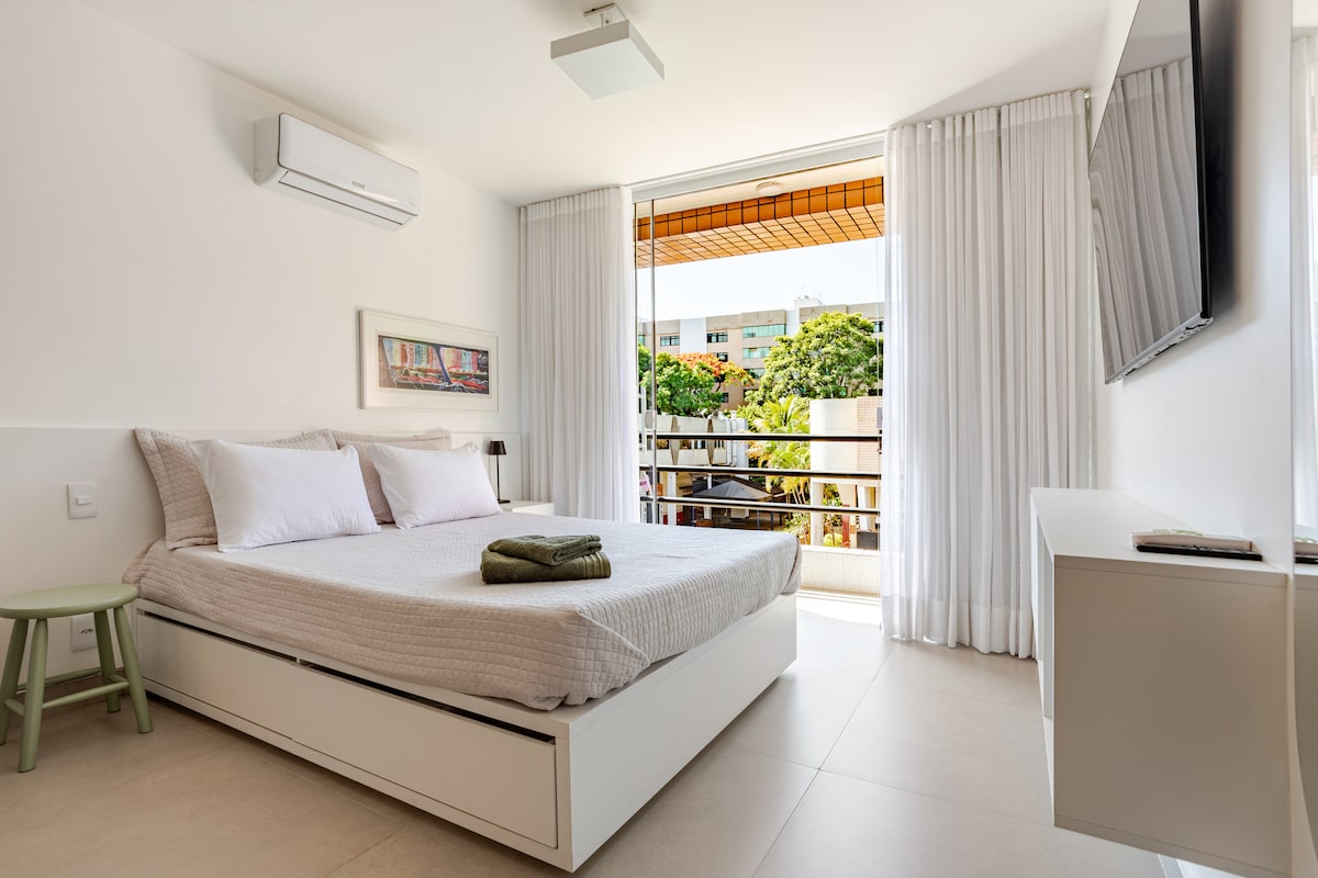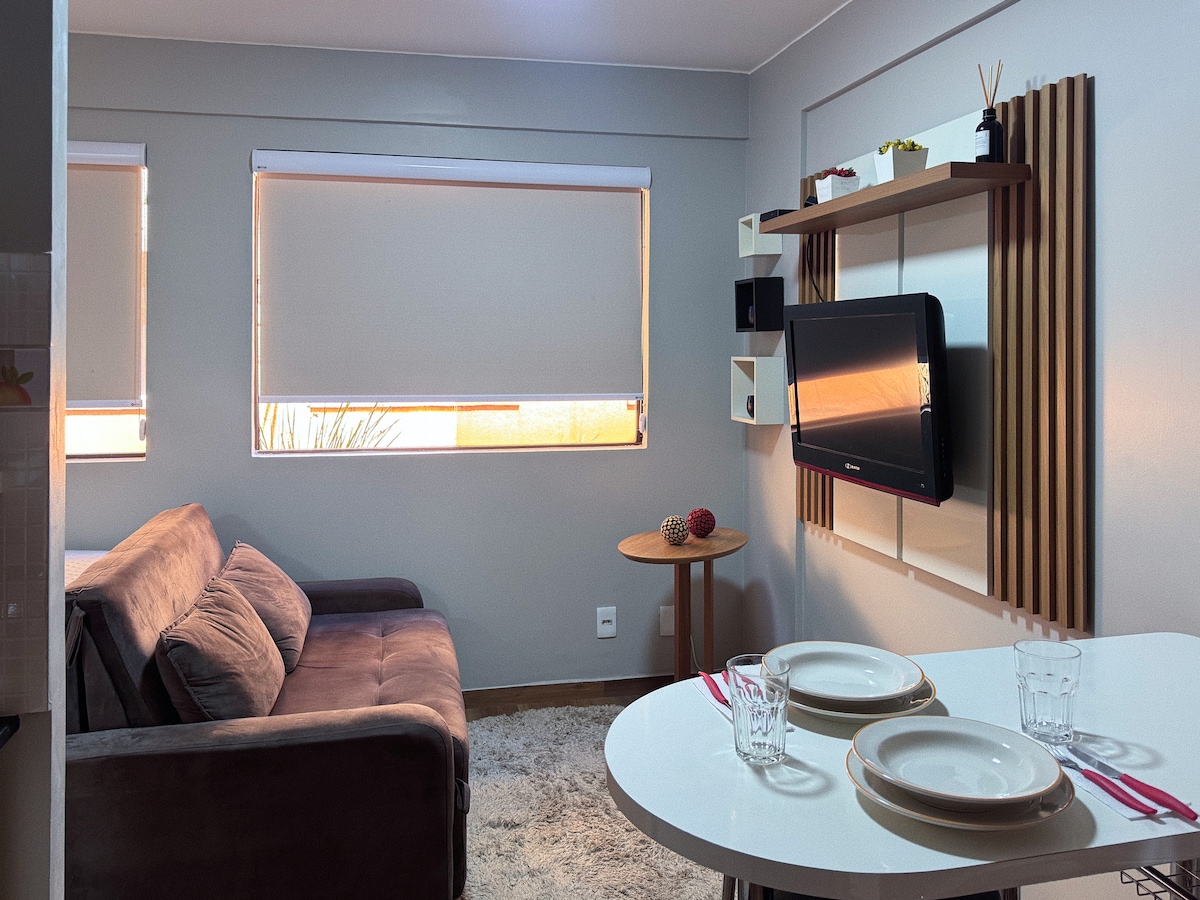 Abrace o estilo neste lugar tranquilo e bem localizado. A unidade "Praiana" é o seu lugar com estilo, tranquilidade e localização perfeita em Brasília. Está localizada no Plano Piloto e fica a poucos passos de Supermercado, restaurantes, farmácia 24h, padarias, salão, cafeterias. Disponibilizamos máquina lava e seca na unidade. É um PEQUENO espaço (18 m²) que possui tudo que você precisa. Cozinha equipada, secador de cabelo, ferro de passar roupa e uma decoração única. Decorada por design!