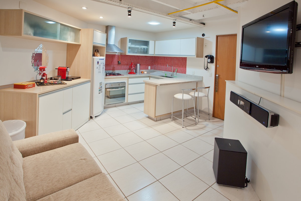 Charming, equipped and clean space in an excellent square in Brasilia, designed by architects to offer a complete stay experience in the capital. With an open view and surrounded by vegetation, it has a full kitchen and quality bedding and bath. Quiet neighborhood, but super well equipped, with restaurants and shops, Pão de Açúcar supermarket and drug stores and even a gym with a daily or weekly pass. BUILDING WITHOUT ELEVATOR. design by @ladrilharia_arq photos @juliatotoli.foto