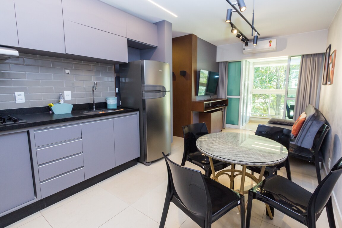 This flat with a lake scenery is ready to make your stay in the capital unforgettable! Situated just 5 minutes from "Esplanada", the apartment offers the perfect balance between centrality and the tranquility of nature by the lake. Additionally, our resort features a range of amenities: two beautiful infinity pools, a jacuzzi, sauna, gym, three coworking spaces, a 24-hour convenience store, 24-hour laundry, and an elegant pier by the lake with a view of the JK Bridge.