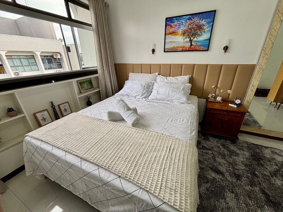 Curta uma experiência elegante neste lugar bem-localizado. Espaço ideal para hospedagem com segurança e conforto. Dispõe de Sistema de Chaves Eletrônica com senhas que proporciona segurança e facilidade de check-in. Smart TV, Wi-Fi de 400MEGA, canais e NETFLIX. O bairro fica em local privilegiado, com amplo comércio, áreas de lazer, restaurante, farmácia, padaria,supermercado 24H, Banco, salão de beleza, parques etc... Local próximo a Esplanada dos Ministérios.