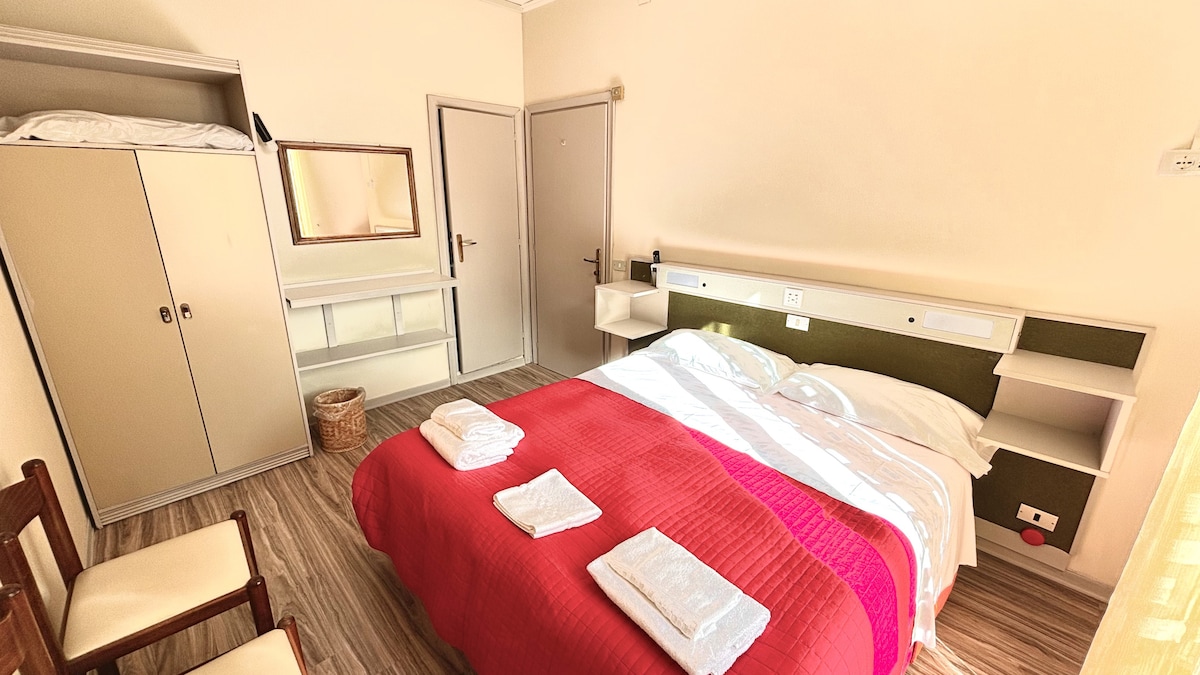 Camera quadrupla disponibile in configurazione matrimoniale o con letti singoli, dotata di frigo bar, bagno privato, asciugacapelli, box doccia, servizio Wi-Fi gratuito, cassaforte, TV a schermo piatto.