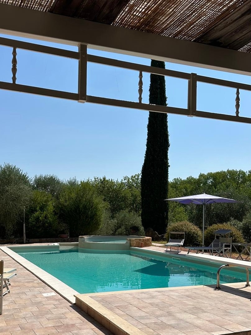 Located within the Borgo Santa Maria Farmhouse, immersed in the green countryside of the Umbrian countryside, a stone's throw from Tuscany, this house is the ideal place to spend a holiday of nature and art tourism. The pool and the garden are places to relax to sip a glass of wine at sunset, read a book on the hammock, in absolute tranquility. There is a BIO vegetable garden, aromatic herbs, and seasonal fruit such as blackberries, raspberries, currant, raisins and much more.