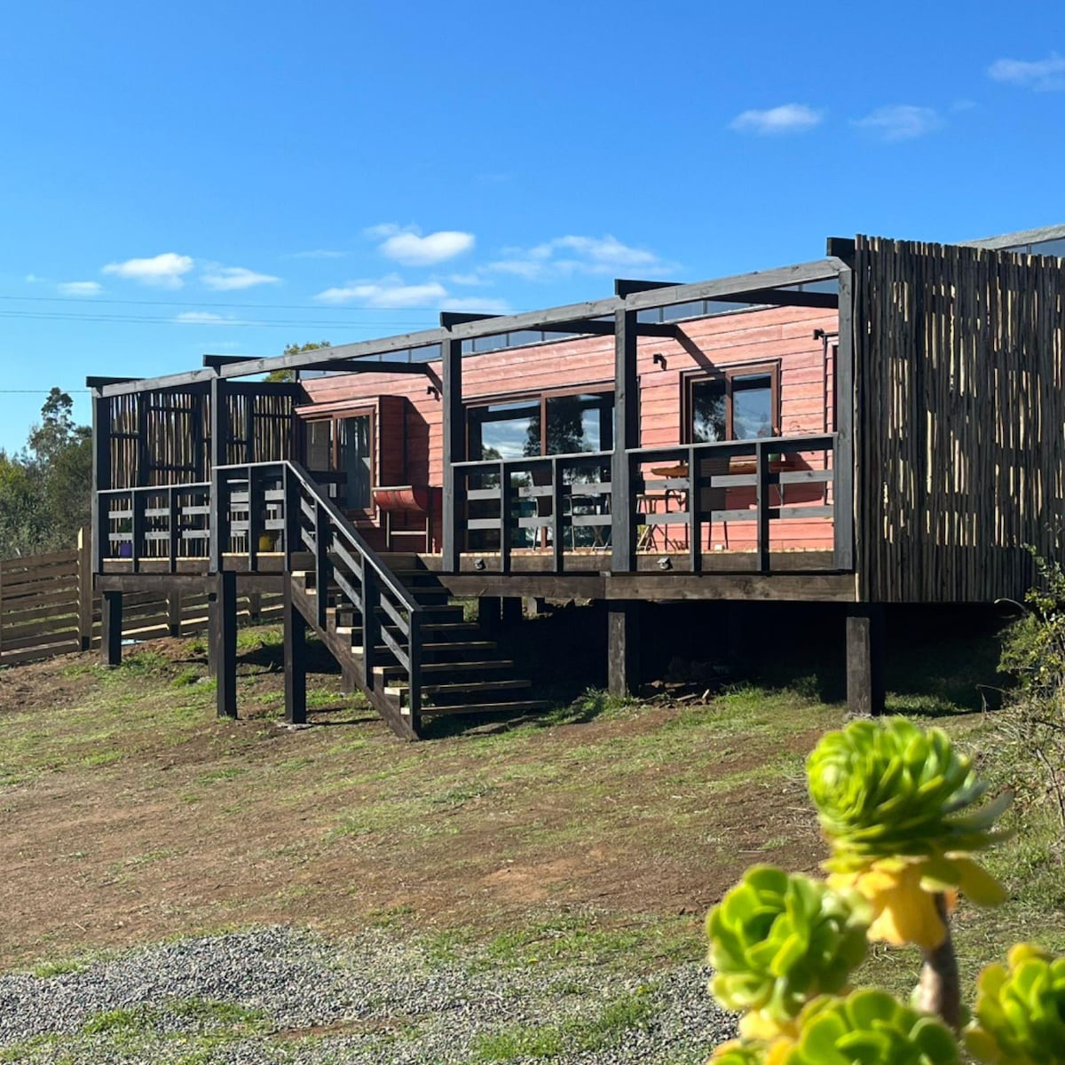 Cabaña de madera en medio de la naturaleza, con increíbles vistas a la laguna de cáhuil y a una quebrada de bosque nativo. Este mágico lugar está bien conectado con las principales atracciones de la zona, pero a la vez retirado lo justo y necesario para disfrutar del silencio del bosque. Tiene terrazas para tomar sol, hot tub, rampa de skate, fogón, parrilla a gas y a leña. Full señal celular y wifi.