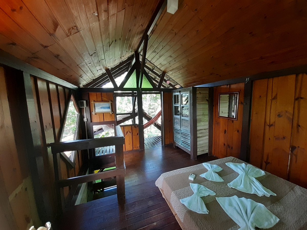 Cabana estilo TreeHouse, vista panorâmica, cercado por natureza é o diferencial desta exclusiva cabana! Com uma varanda acima da linha das arvores voce tera uma vista paradisíaca do oceano, mata nativa, canal cristalina e um vilarejo simpático de pescadores. Não a acesso a carros no morro, tornando se um lugar perfeito para amantes da natureza, aventureiros e quem ama praticar trilhas e esportes aquáticos. Localizado 15 minutos a pé da praia, estacionamentos, restaurantes e transporte público.