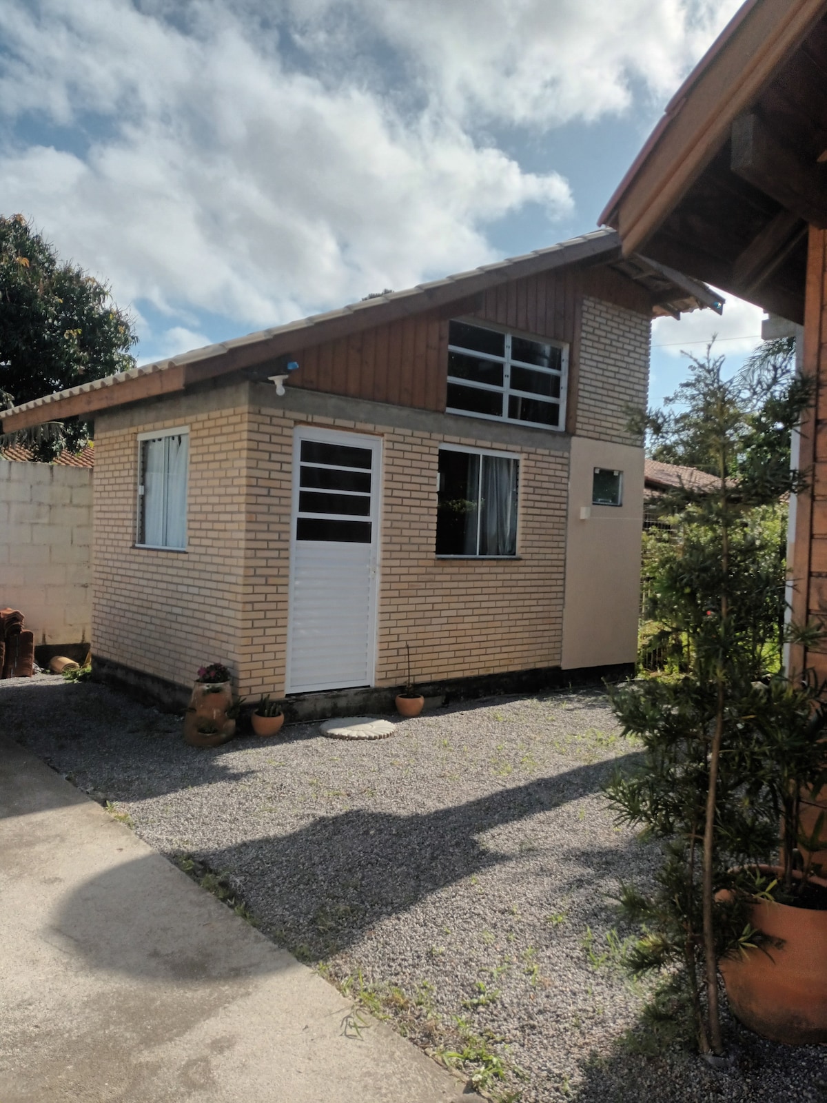 Aconchegante casa de madeira, 42 m2, com 2 quartos, cozinha toda equipada e moderna. Oferecemos uma área externa compartilhada com outras 2 casas, com piscina, área gourmet com churrasqueira e um lindo jardim com paisagismo e estacionamento incluído. Temos uma localização privilegiada, próximo as praias da Joaquina, Praia Mole, Galheta e Lagoa da Conceição.