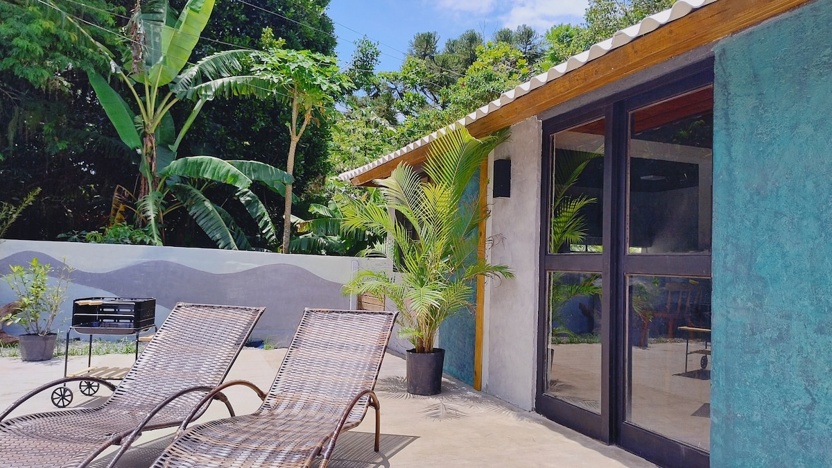 Relax in a bright and spacious 1-bedroom tiny home surrounded by mountains and rainforest. Enjoy large windows, nature views, Apple TV, Google Assistant, and hot/cold AC. The private back patio offers seating, a hammock, and a BBQ space. An 8m shared pool with loungers is just steps away. Part of a small villa with privacy maintained, and conveniently located next to parking and close to all urban city amenities. Perfect for a couple seeking comfort and tranquility.