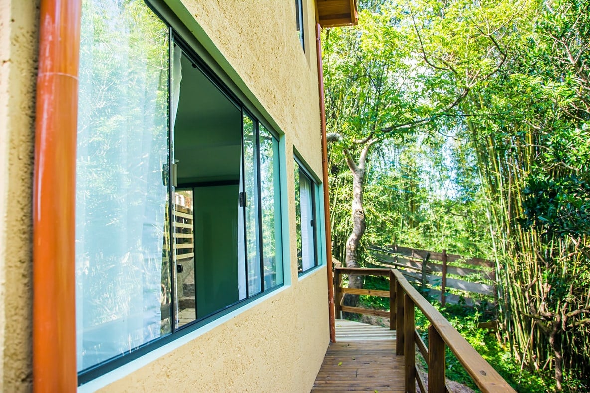 Studio with 3 windows with more than 2 and a half meters wide giving a panoramic view of the whole area of preservation of Atlantic forest, between the soft beach and the joaquina. Deck around the house creating another outdoor environment enjoying the morning sun and late afternoon. The studio is on a street that gives access to a trail in the Atlantic forest to a beautiful beach hidden between the mole hills and Joaquina "the secret".