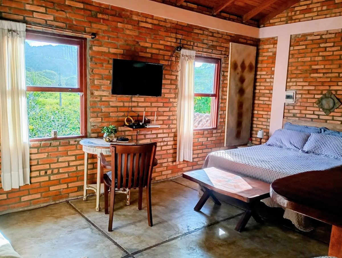 Casa na Pedra: Refúgio Único e Sustentável em Florianópolis Hospede-se em um espaço mágico, onde a natureza e o conforto se encontram. A Casa na Pedra, construída ao redor de uma imponente formação rochosa, oferece um ambiente único de paz e conexão. Destaques: -Sustentabilidade: Produzimos nossa própria energia limpa, respeitando o meio ambiente. -Design único: A pedra central traz charme e uma atmosfera especial ao espaço. -Natureza e tranquilidade: Cercada por um jardim encantador.