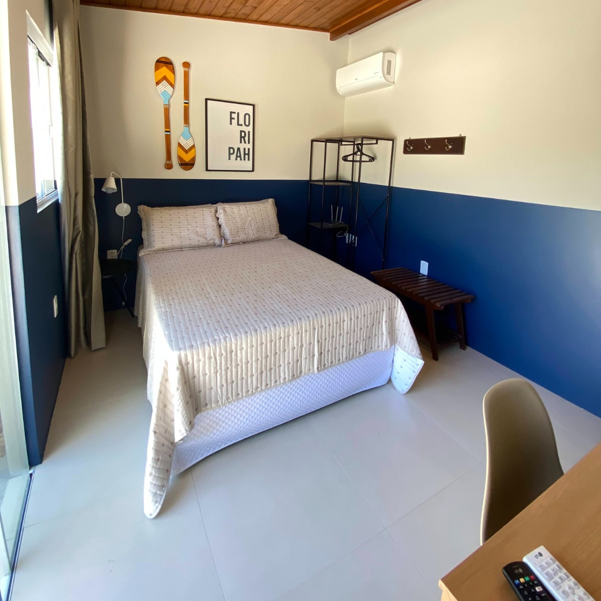 Paradise location, right on the beach with a privileged view of Lagoa da Conceição. The suite is ideal for two people and is equipped with a bathroom, air conditioning, minibar, electric kettle, TV, and a very comfortable double bed. The location provides easy access to the beaches on the east side of the island, with a 15-minute walk to Praia Mole and a 30-minute walk to Praia da Joaquina.