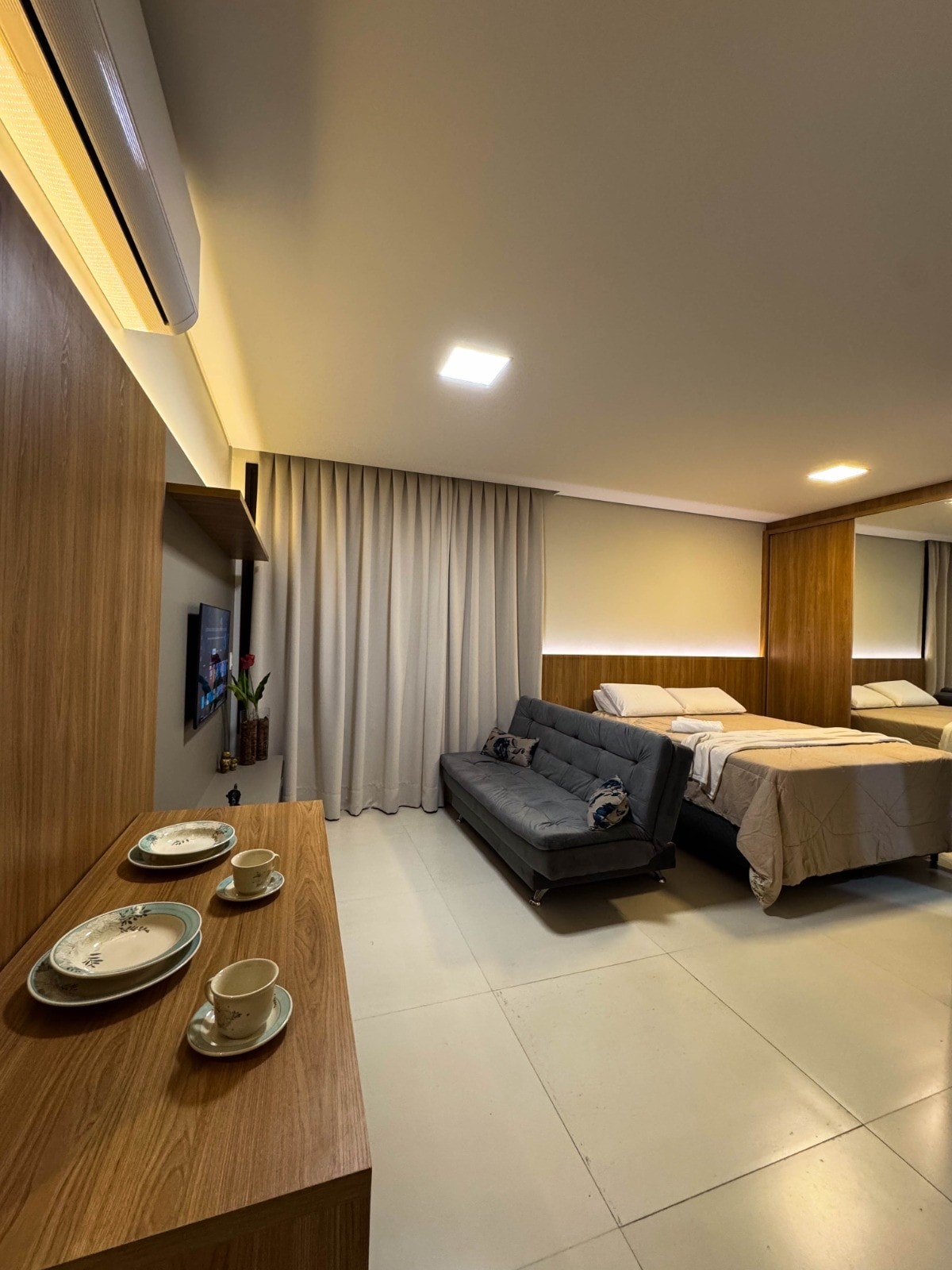 Flat com cama de casal e sofa-cama super confortável, cozinha planejada contém pia, fogao, frigobar e micro-ondas. Equipada Smart TV 32". Mobiliário novinho pra vc desfrutar de suas féria com muito conforto, num condomínio que oferece piscina com toboágua, piscina aquecida, churrasqueira e salão de jogos!!! Tudo isso na beira da praia dos Ingleses!!