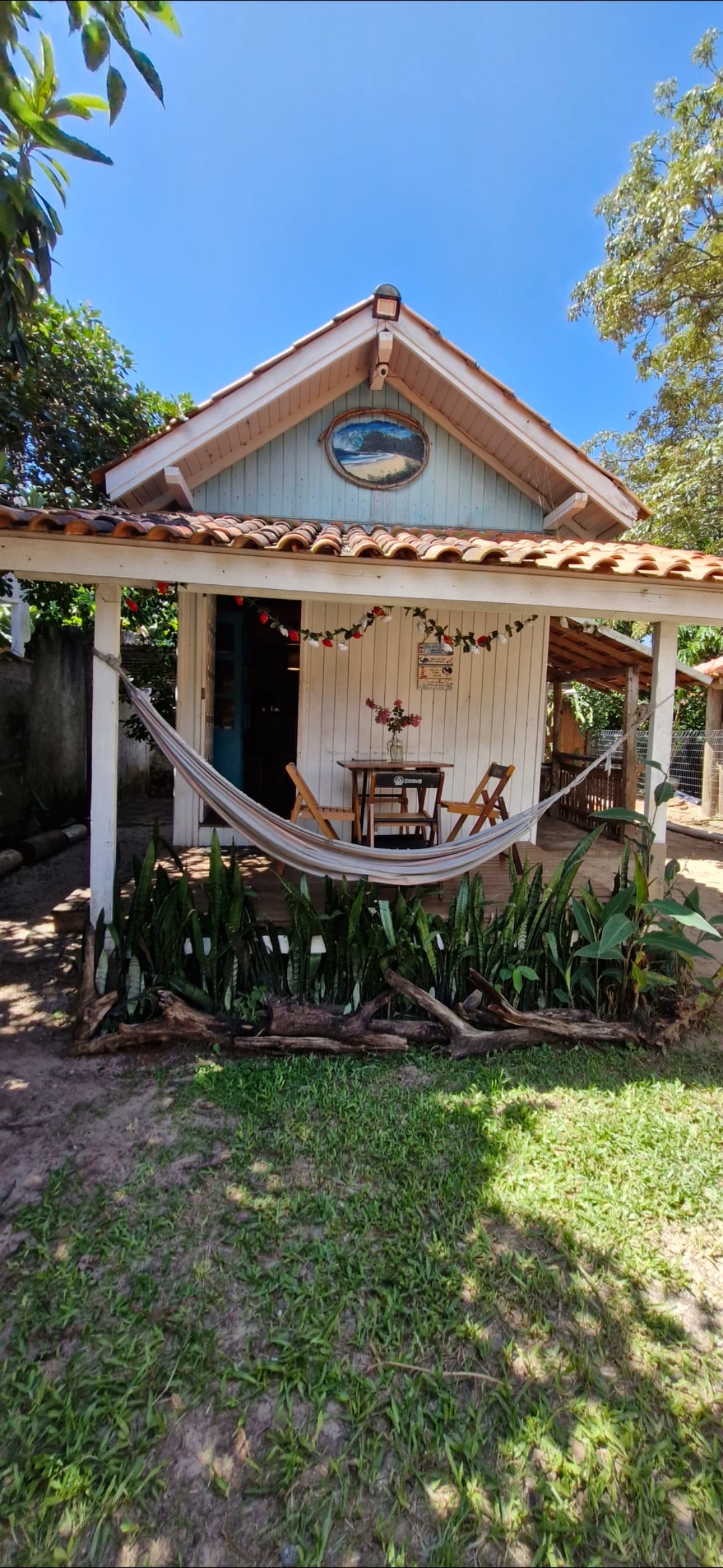 O chalé é totalmente equipado para uma estadia confortável e inesquecível: Quarto • Quarto aconchegante com sacada e vista para o pôr do sol Sala • Sofá confortável para relaxar depois da praia • Smart TV • Ar-condicionado Cozinha completa • Utensílios para preparar refeições completas Banheiro • Chuveiro com aquecimento a gás Relaxamento • Banheira de hidromassagem para momentos de descanso a dois À noite, o clima é silencioso com céu estrelado e a brisa suave vinda do mar.