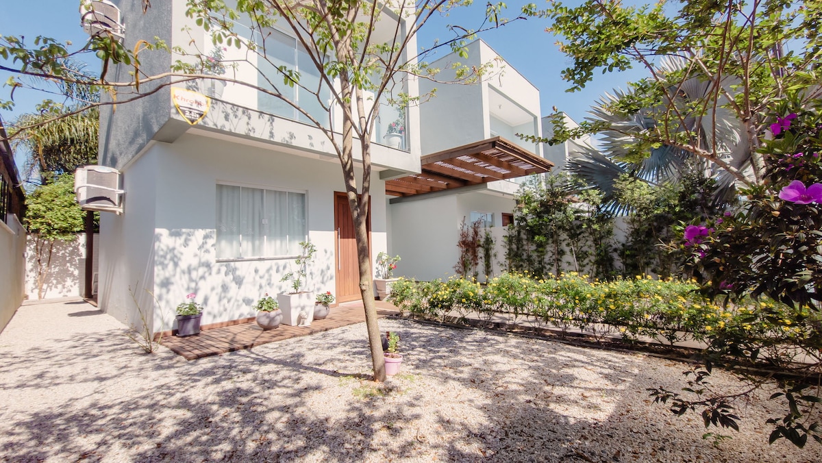 Bem-vindos à nossa casa! Uma casa geminada, construída para que nossos hóspedes se sintam à vontade e desfrutem com segurança e conforto do nosso espaço e das praias de Floripa. A Praia do Santinho, onde a casa está localizada, é reconhecida como uma das praias mais limpas do Brasil! Estamos próximos à Praia dos Ingleses. A residência é ideal para quem busca hospedagem durante eventos no Resort Costão do Santinho. Oferecemos uma casa completa, segura, limpa e confortável para estadia memorável.