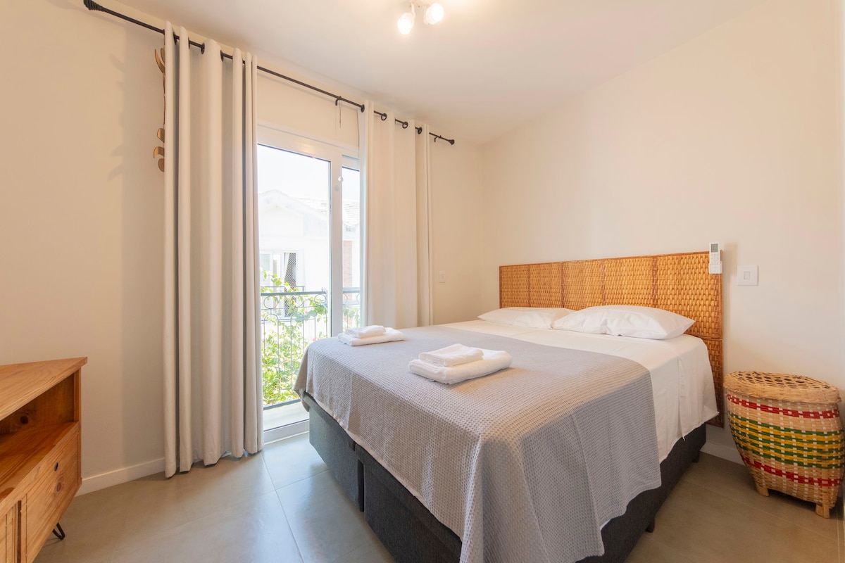 Welcome to your beachfront paradise at Praia Mole! This modern, stylish condo offers immediate access to one of Brazil's most beautiful beaches. Perfect for surfers and digital nomads, Praia Mole is renowned for its excellent surf conditions and vibrant community. Our house features two comfortable bedrooms, a fully equipped kitchen, super high-speed Wi-Fi (1000 MB), workspaces, air conditioning in all spaces, and a private barbecue area.
