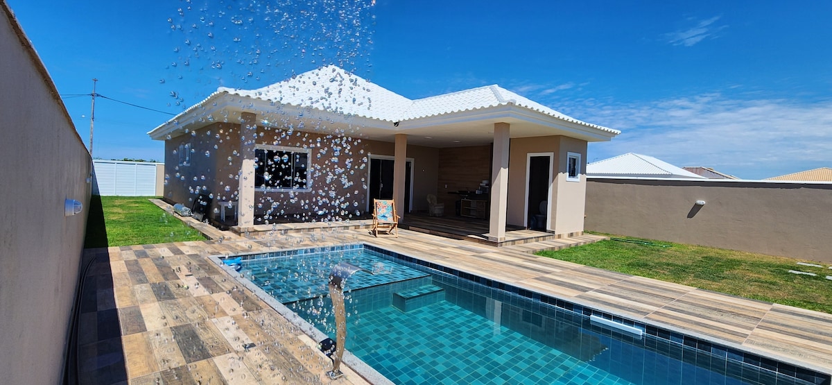 Lugar perfeito para relaxar! Praia e Lagoa juntas, a Cancun brasileira, localizada na Região dos Lagos, entre a lagoa e a praia, no melhor Condomínio da Região, com quadra de jogos, parquinho para crianças, campo de futebol, jogos. O espaço é composto por 01 suite, sala, cozinha, área de serviço, área gourmet completa com churrasqueira e 01 banheiro na parte externa da casa. Casa perfeita para passar os feriados e períodos prolongados. Quintal grande e gramado com espaço para estacionar.