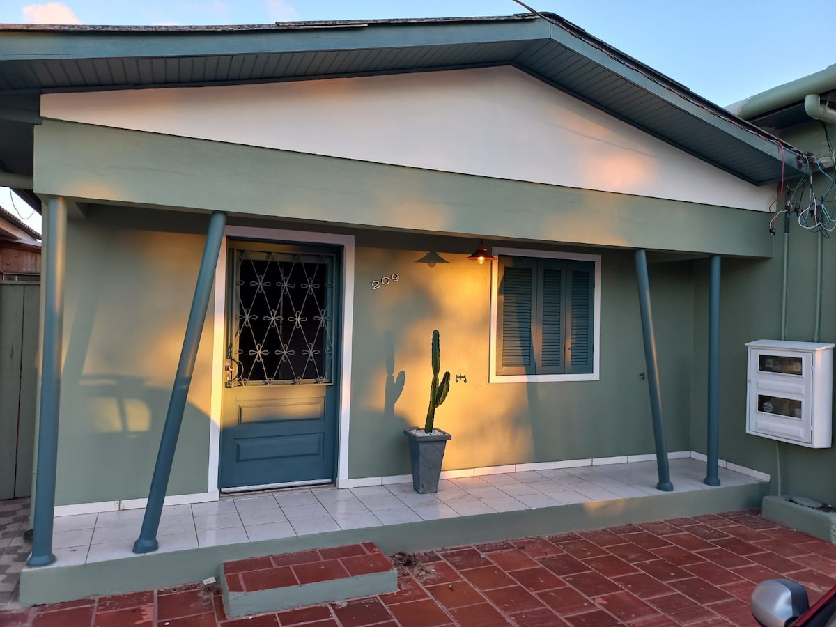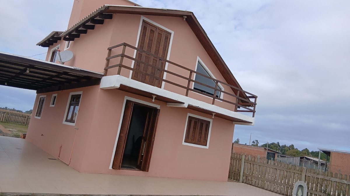 A casa se encontra num bairro calmo de Arambaré, a + ou - 250 metros da lagoa dos patos, a casa possui 3 quartos, sendo uma suíte, 2° quarto com uma cama de casal, 3° quarto com um beliche e uma cama de solteira, todos com ar condicionado, a sala de estar e interligada com uma cozinha e possui televisão smart, ventilador, sofá e duas poltronas na sala e na cozinha e equip. com geladeira frostfree, torradeira, cafeteira, forno de micro-ondas e elétrico e fogão. Garagem c/ churrasqueira e Wi-Fi.