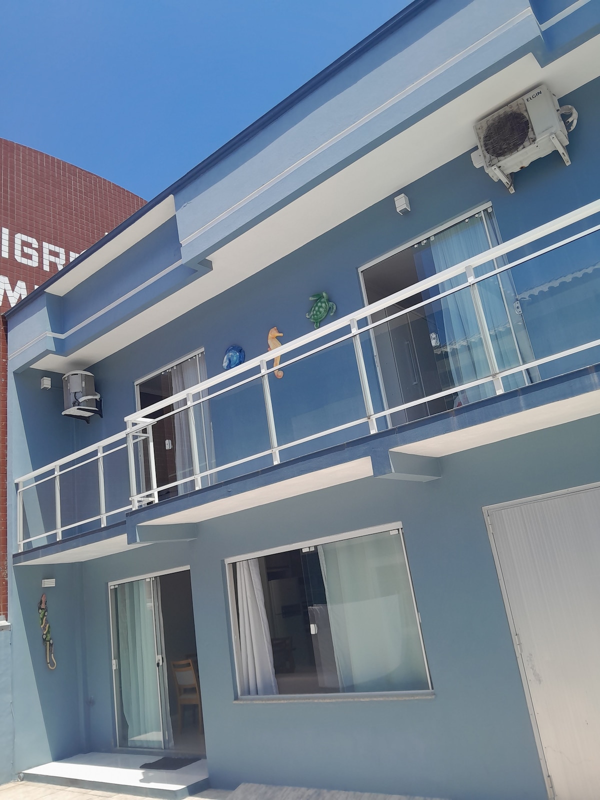 Complete apartment in the city center, close to markets, cinema, restaurants and shops. Less than 5 minutes from the sea! 😃 The apartment has a bedroom, living room, bathroom and kitchen/utility area, fully furnished and ready for use. In the living room, the apartment has a double-size sofa bed. Sea views from both the apartment and the terrace, which has a swimming pool, gym and leisure area. Also includes TV with Netflix and other streaming services (not included), barbecue and garage