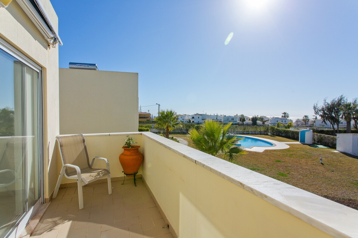 Holiday apartment with wonderful sea & golf views. The flat is composed by a equipped kitchen, living and dining room in open space, with wood burning fire and access to the balcony where the guests can enjoy the views. Also comprises a bathroom with shower and a double bed bedroom with fitted wardrobes. With views to the golf course and being close to amenities, this flat is perfect for your holidays. Located on Vila Golfemar, benefiting of a communal swimming and communal car parking.