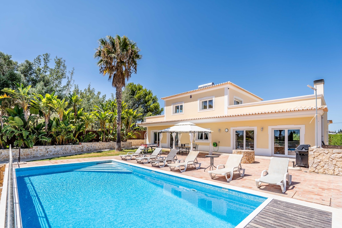 An atmospheric and luxurious city villa in the heart of the Algarve. The house has three outdoor areas where you can enjoy the sun all day long. Relax on the roof terrace with a view, the balcony with jacuzzi at the back or in the patio / backyard with heated plunge pool. surrounded by greenery, so you experience peace and privacy. The location makes it a perfect base to discover the Algarve. Just a five-minute drive away you will find some of the most beautiful beaches