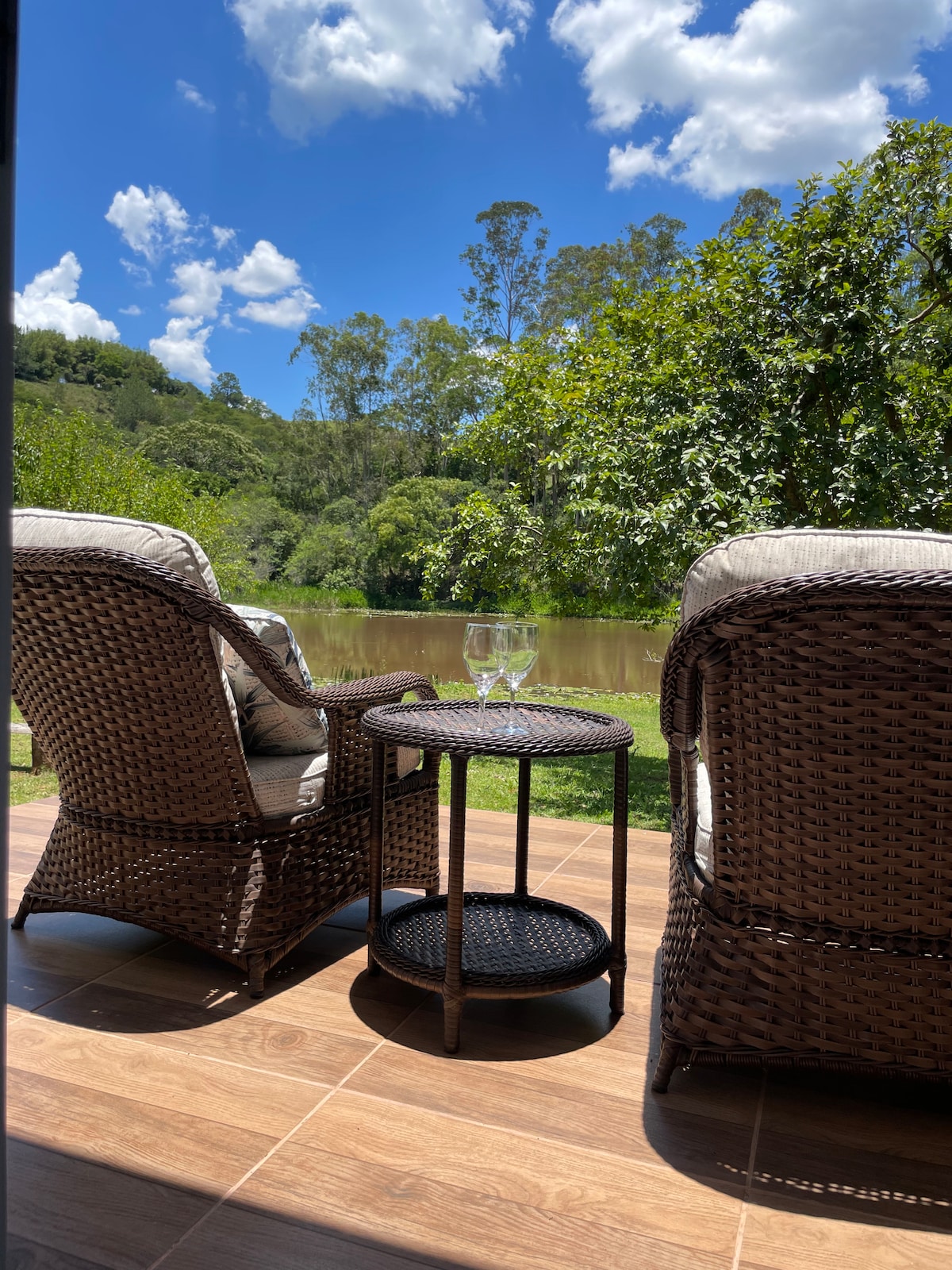 Suíte confortável com 1 cama de casal e 2 camas de solteiro, TV Smart, ventilador de teto, frigobar e espaço para guardar roupas. Varanda com mesas, cadeiras, poltronas, redes, churrasqueira, mesa de ping pong, jogo de dardos e jogos de tabuleiro. Piscina com muito espaço pra tomar sol. Cozinha com fogão, micro-ondas e todos os utensílios necessários. Fire Place. Estacionamento ao lado da suíte. Estamos à 5 minutos do centro da cidade em um bairro rural. Café da manhã é cortesia.