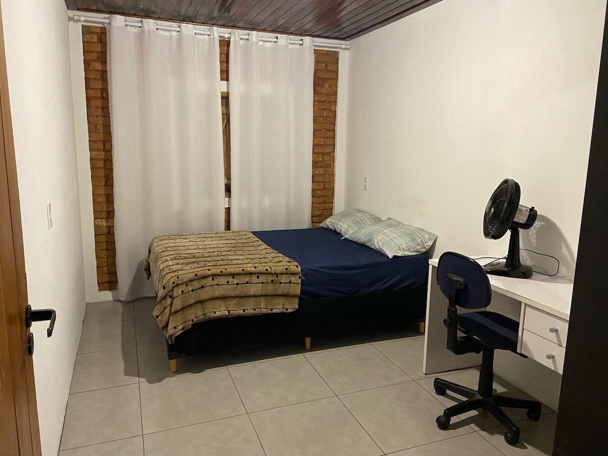 Suíte confortável com 1 cama de casal e 2 camas de solteiro, TV Smart, ventilador de teto, frigobar e espaço para guardar roupas. Varanda com mesas, cadeiras, poltronas, redes, churrasqueira, mesa de ping pong, jogo de dardos e jogos de tabuleiro. Piscina com muito espaço pra tomar sol. Cozinha com fogão, micro-ondas e todos os utensílios necessários. Fire Place. Estacionamento ao lado da suíte. Estamos à 5 minutos do centro da cidade em um bairro rural. Café da manhã incluso.