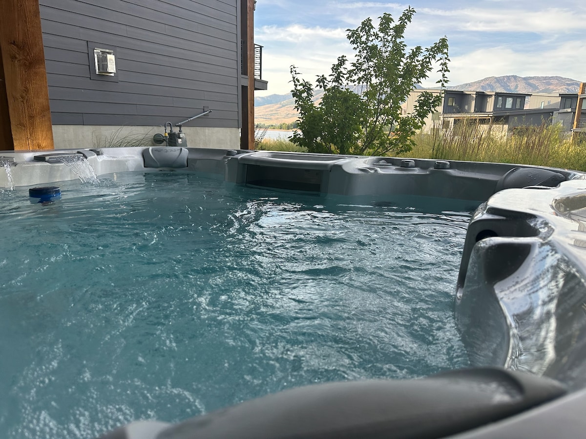 Lakefront location w/ gorgeous lake and mountain views. Beach access is less than a minute away. Located just 8-10 minutes from the world-class ski resort Snowbasin and 15-18 minutes from Nordic Valley & Powder Mountain - perfect for ski or wedding getaways. Relax in our large hot tub & infrared sauna after a long day, or chat with friends by the fire on our private balconies. In the summer, we provide 4 paddleboards and a lily pad to enjoy on the lake as well as pickleball equipment.