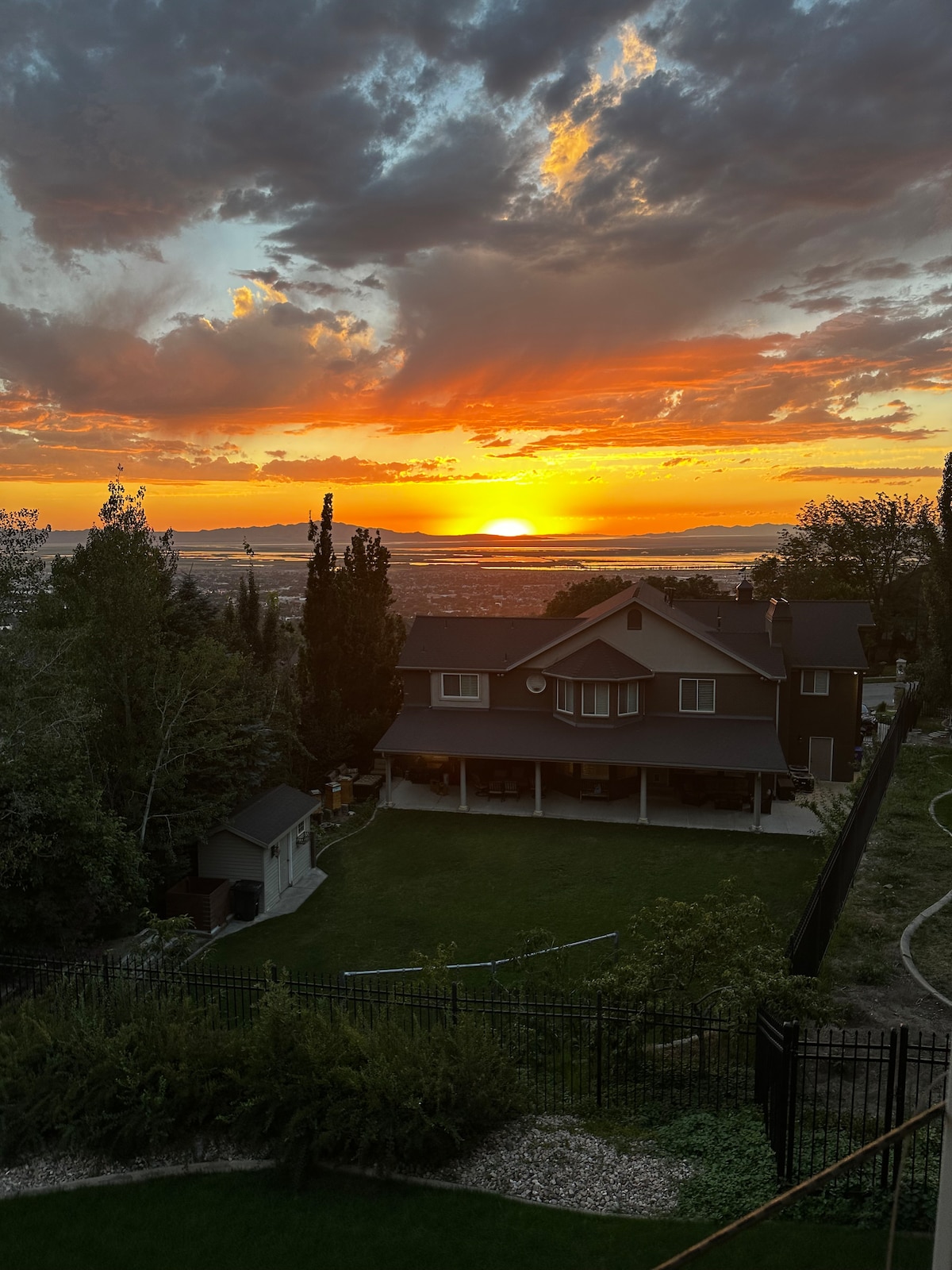 This spacious studio apartment is nestled against the mountain in a quiet and safe neighborhood located at the top of the Bountiful hills. Hiking and biking trails are located across the street and all around. Two golf courses are located down the street in one direction while a recreation center with an olympic sized pool with water attractions for kids is located in the other direction. Watch the sun set over the Great Salt Lake from your own covered patio with an amazing view. With covered guest parking, a full bath complete with a walk-in shower and a tub, and a fully stocked kitchen, this will be your home away from home. With only 7 mins. to the freeway, 19 to the airport, and 19 to downtown Salt Lake City, this location is ideal. Close to all the world-class ski resorts Utah has to offer for year-round fun. Just six houses away from the beautiful Bountiful Temple belonging to The Church of Jesus Christ of Latter-Day Saints. This completely private studio apartment, with it’s own entrance, is located in the walk-out basement of our family home. It has a fully stocked kitchen, a large screen TV, and a washer and dryer.