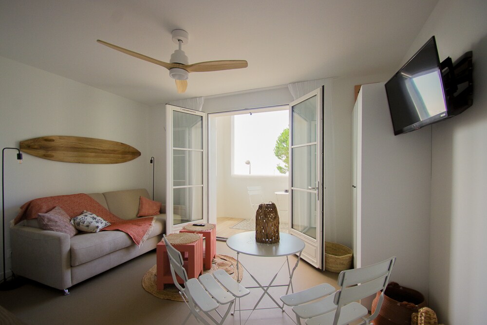 Venez passer un séjour au bord de l'eau dans un esprit décontracté, basé autour de la glisse et du bien être. Votre appartement est situé dans une petite résidence de 6 logements, la Rivedoux Beach House. Entièrement neuf, ce studio tout équipé et aménagé pour votre confort, vous offre une petite terrasse plein sud avec une superbe vue mer. Vous n'avez qu'à traverser la rue pour accéder à la plage. Les restaurants et commerces sont à proximité