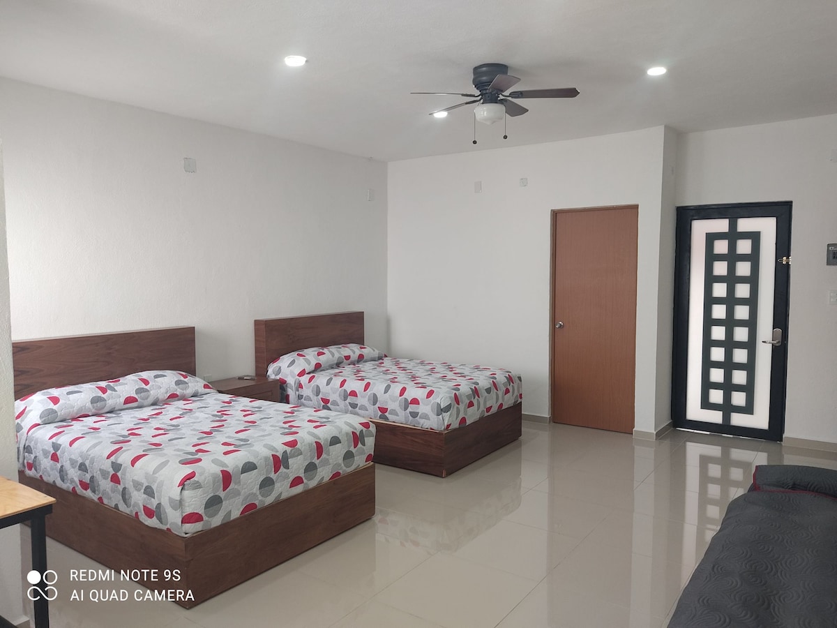 Habitación Tipo Loft, Con 2 camas, cocina equipada, aire acondicionado. Contamos con estacionamiento privado.