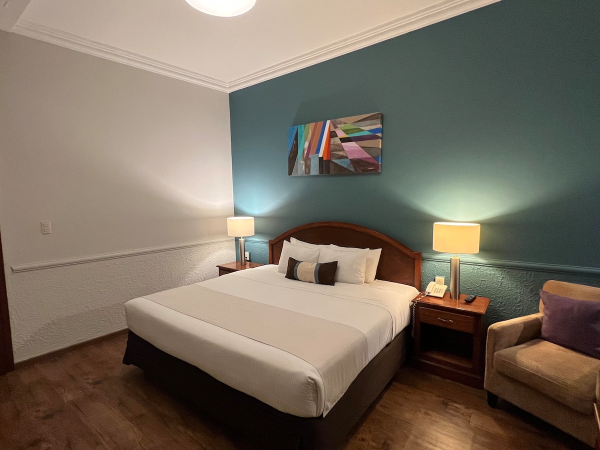 En Hotel Scala disfruta de habitaciones amplias y funcionales con un diseño acogedor, pensadas para viajeros que les gusta un buen descanso. Nuestras habitaciones cuentan con camas y almohadas cómodas, televisión, escritorio de trabajo, wifi de cortesía, aire acondicionado y calefacción. Tu hospedaje incluye un delicioso Desayuno Buffet con barra de alimentos calientes, huevos al gusto y otros platillos que podrás disfrutar en nuestra cafetería. Además contamos con estacionamiento techado.