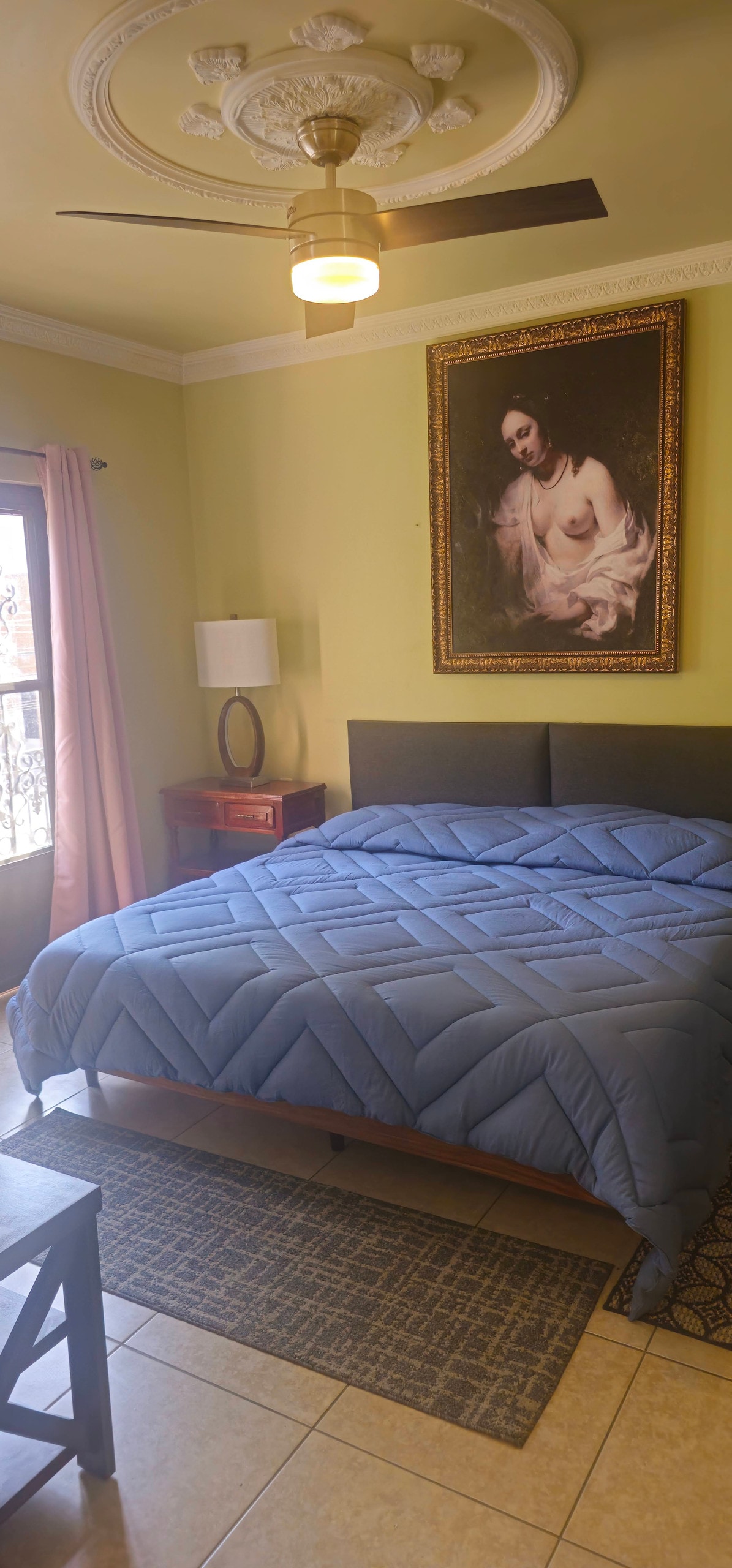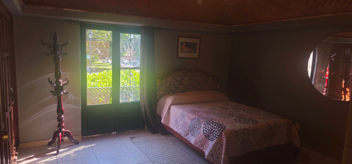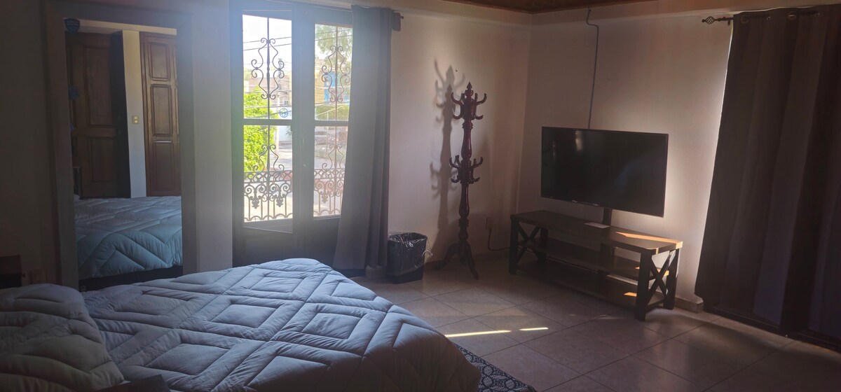 Disfruta del fácil acceso a tiendas y restaurantes populares desde este encantador lugar para hospedarte a solo unos pasos del Centro Historico de Lagos. La habitacion cuenta con baño completo compartido , closet, agua caliente , perchero , espejo completo , balcon al exterior y TV de 50" con Netflix , Hbo Max, Disney, Star+