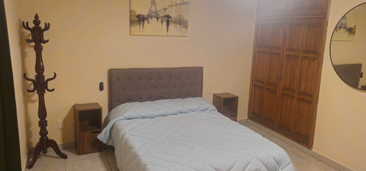 Todo lo necesario para una estancia corta o larga. Cuenta con Cama Matrimonial, cocina equipada, baño completo, escritorio, Internet de 500 Megas. Facturamos.