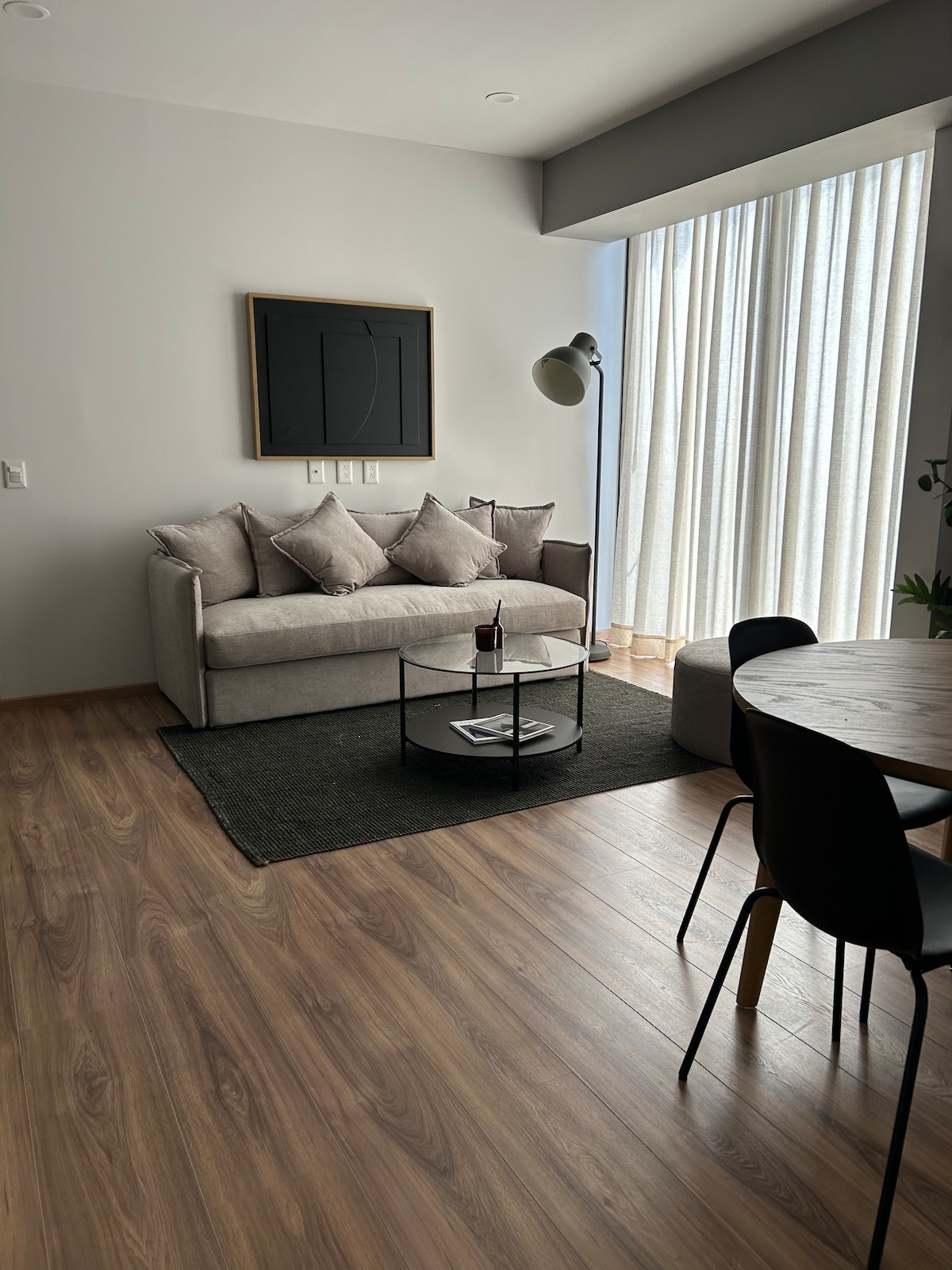 Elegante y moderno, ideal para familias, PERSONAL DE EMPRESAS, docs o turísticos, FACTURAMOS (preguntar), bien equipado, con 2 habitaciones (6 camas y 2 sofacama) ideal para estancias largas o cortas, con estacionamiento dentro del edificio, que goza de privilegiada ubicación residencial, tranquila y segura, minimo ruido externo, a poca distancia de comercios, parques, zonas deportivas, lavandería, tomas de autobús y bares, a 7 min del centro de la ciudad, CUaltos, hospital regional y del IMSS,