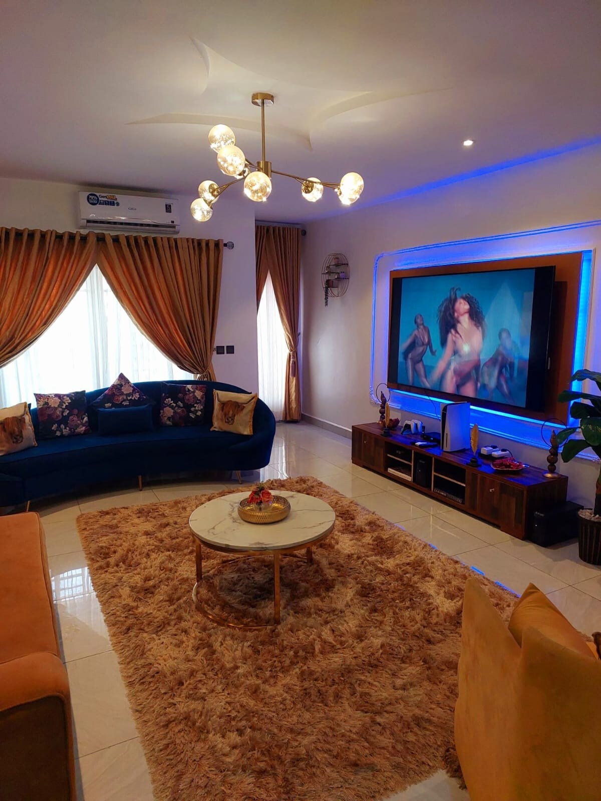 This lovely newly furnished 3 bedroom all ensuite apartment is located in a secure gated estate with 24-hour security at Ipaja Road, Lagos. The community is very peaceful and the atmosphere is calm. The apartment is fully furnished with a TV, DSTV, Air conditioning, and fan in the living room and bedrooms. The kitchen is fully equipped with modern appliances like a Pressure cooker, rice cooker, electric blender, toaster, kettle, lovely cookware, cutleries and all crockeries needed for cooking.