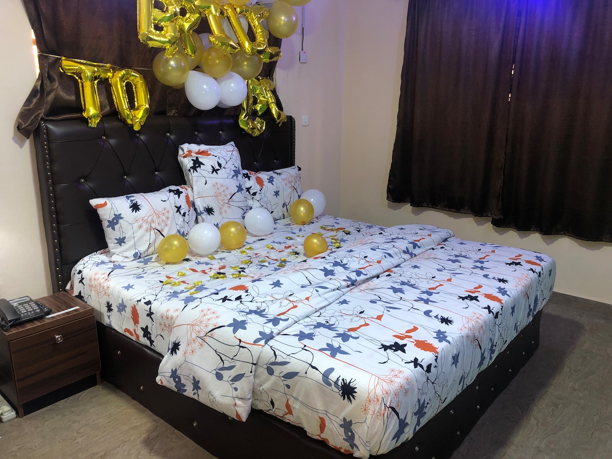 This facility is exquisitely furnished with nice and expensive funiture all the rooms have their own tv, and their is a playstation and a mini bar to cater for your needs. Their lightings are suparbly fitted with chandaliers in all the rooms and a great patio for the guest to relax