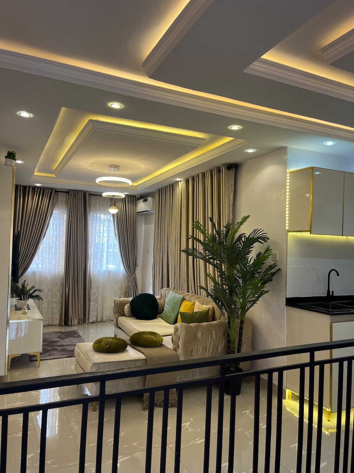 Tuns Palace is a stylishly designed luxury home with extra modern facilities. It is located in a serene and secure estate just before banana island, it is a fully automated smart home with voice activated lights and A.C, fitted with a family sized Cinema room, outdoor Jacuzzi with a view that overlooks the lagoon.