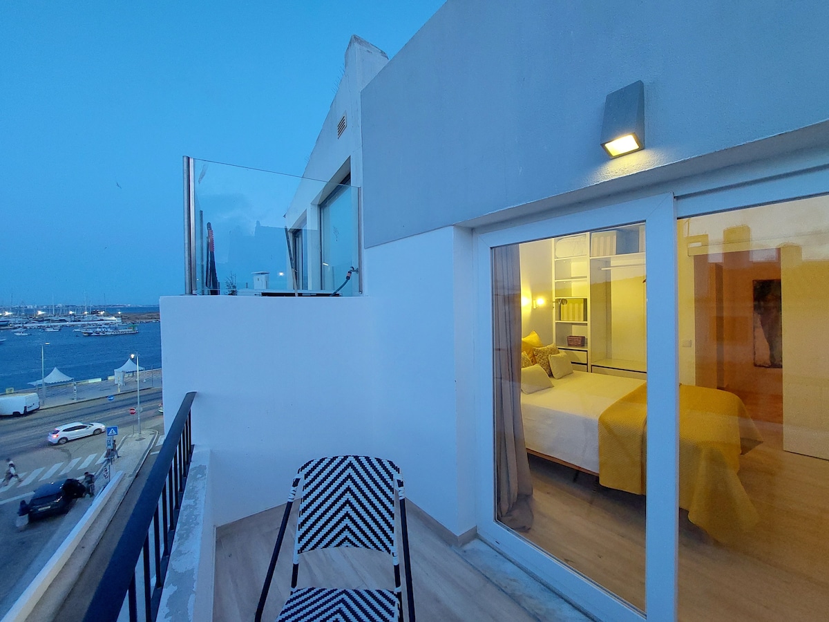 Welcome to Lagos! 😀 Air Conditioning one bedroom apartment located in the heart of Lagos, offering impressive views over Meia Praia Beach, the Harbour and river. Our privilege location offers the opportunity to explore Lagos by foot. We are adjacent to the ancient wall (yet away from noisy bars and restaurants), and the top activities in the area are at hand. A short 10 min walk you will find the Lagos Harbour, departure point for boat excursions and just 8min walk the stunning Batata Beach.