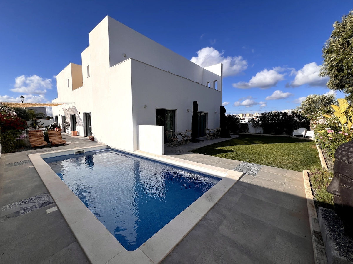UNE MAISON DE VACANCES MODERNE AU COEUR DE LUZ, LAGOS – ALGARVE, PT Fantastique 234 m², villa de 4 chambres avec piscine et parking situés dans une urbanisation très calme a 5’ de Lagos et Praia da Luz. Entouré d'un beau jardin clôturé et complètement privatisé sous un terrain de 2500m². Excellente orientation solaire face au sud. La grande terrasse autour de la piscine et du jardin est idéale pour déguster des repas en famille en plein air. Bbq trampoline mini stade de foot à disposition